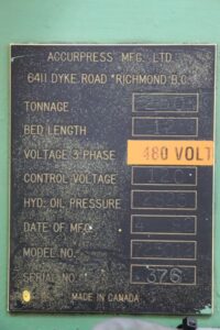 Accurpress 725012 250 Ton x 12′ CNC Press Brake