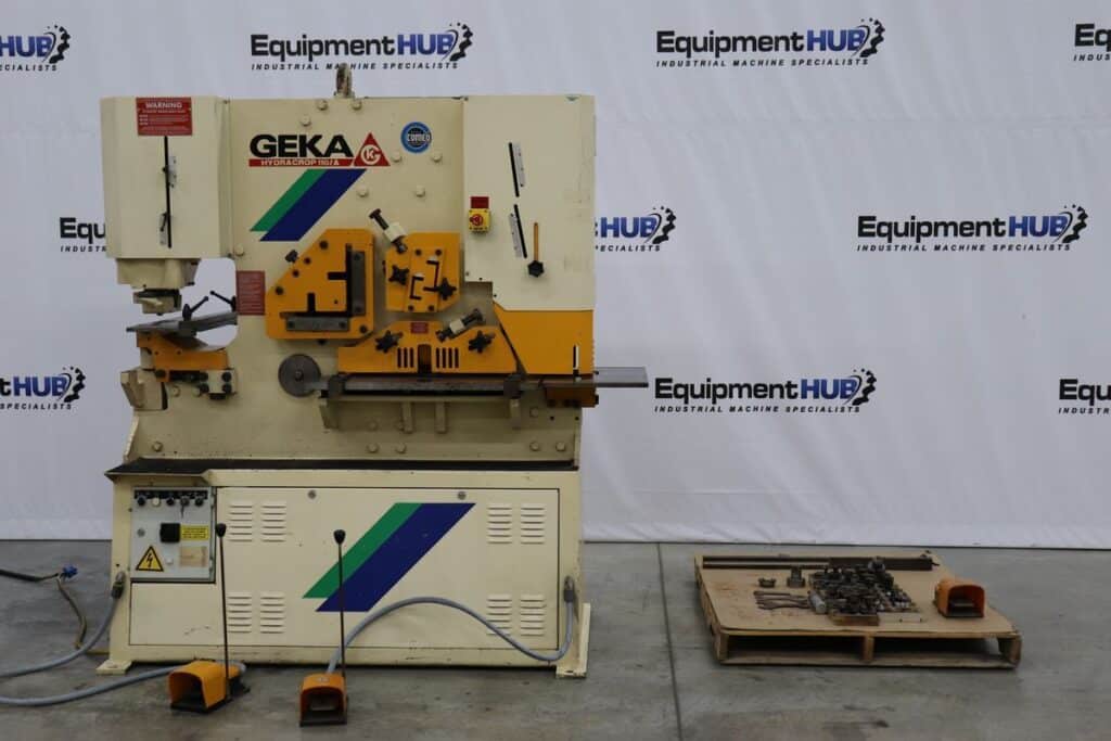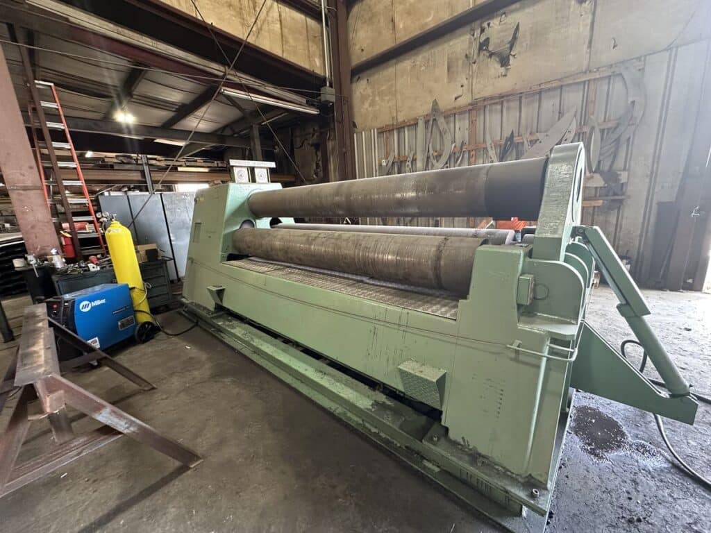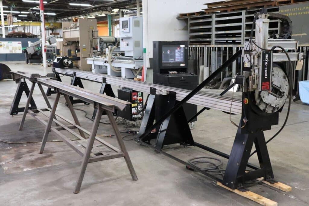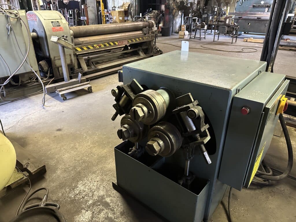 The shop boasts an impressive range of metalworking equipment, including a Standard Industrial AS375-10 Hydraulic Shear, a Pacific 400 G10 1/2″ x 10′ Hydraulic Shear, a 250-ton Standard Industrial AB250-12 CNC Press Brake equipped with an Automec CNC 150 Autogauge, a 100-ton Clearing Niagara HBM-100-6-8 Press Brake with CNC 150 Autogage, and a 50-ton HTC 6′ Press Brake with CNC 99 Control, along with a Chicago S812 Brake, (5) Ironworkers from HMI and Metal Muncher ranging from 50 – 61 Tons. Additional forming and bending equipment includes a Blue Valley 3-1214 1/4″ Flanger, a Webb 7L-9008 3/8″ x 8′ Bending Roll, a Montgomery Model 22 Angle Roll, Ercolina Top Bender w/ dies, as well as a 12″ Roll.