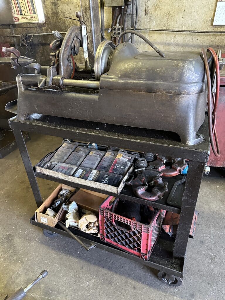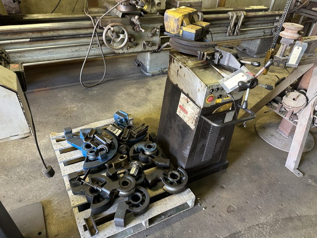 Key manual machining tools include (2) Bridgeport Series 1 Vertical Milling Machines w/ DRO, a Nardini ND1785 E Lathe, a Clausing 5913 Lathe, (2) Radial Arm Drills from Speedmaster and Carlton, (2) Ridgid pipe threaders and (1) Landis dual head threader, (3) Floor Drill Presses.