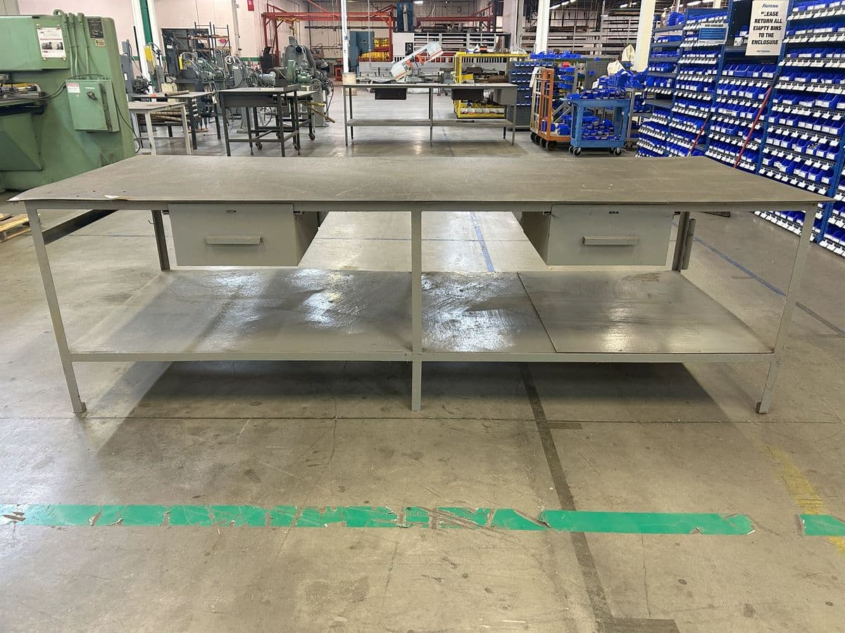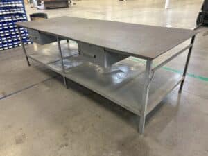 10′ L x 4′ W Heavy Duty Steel Metal Frame Table w/ drawers
