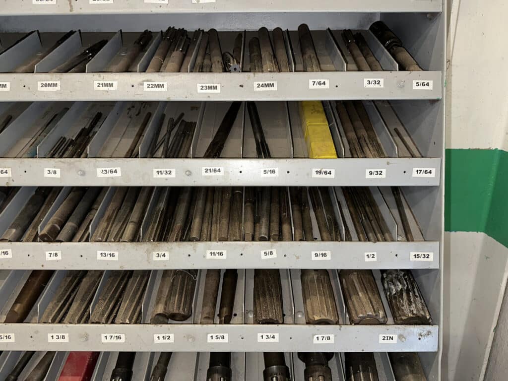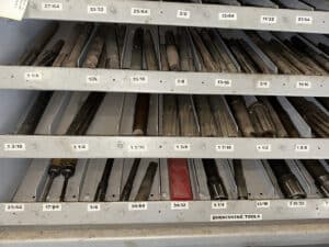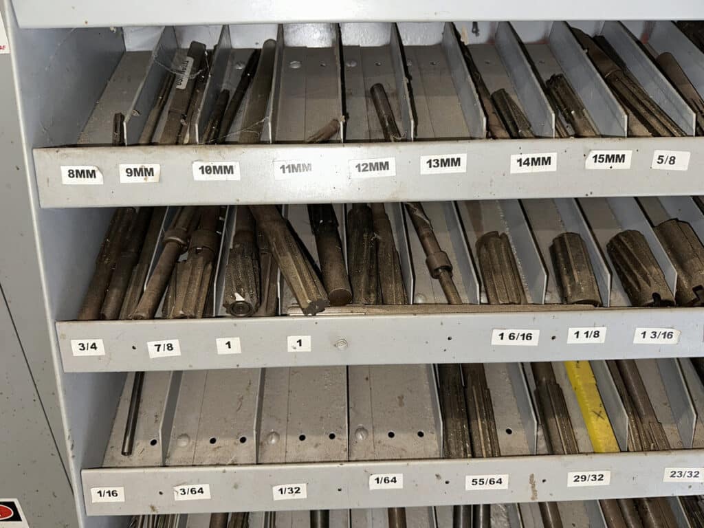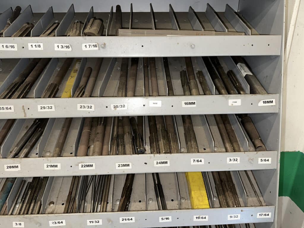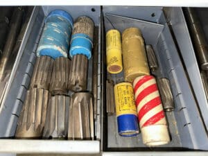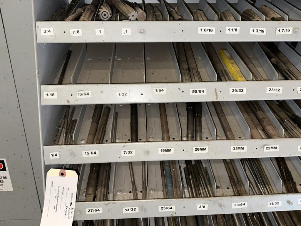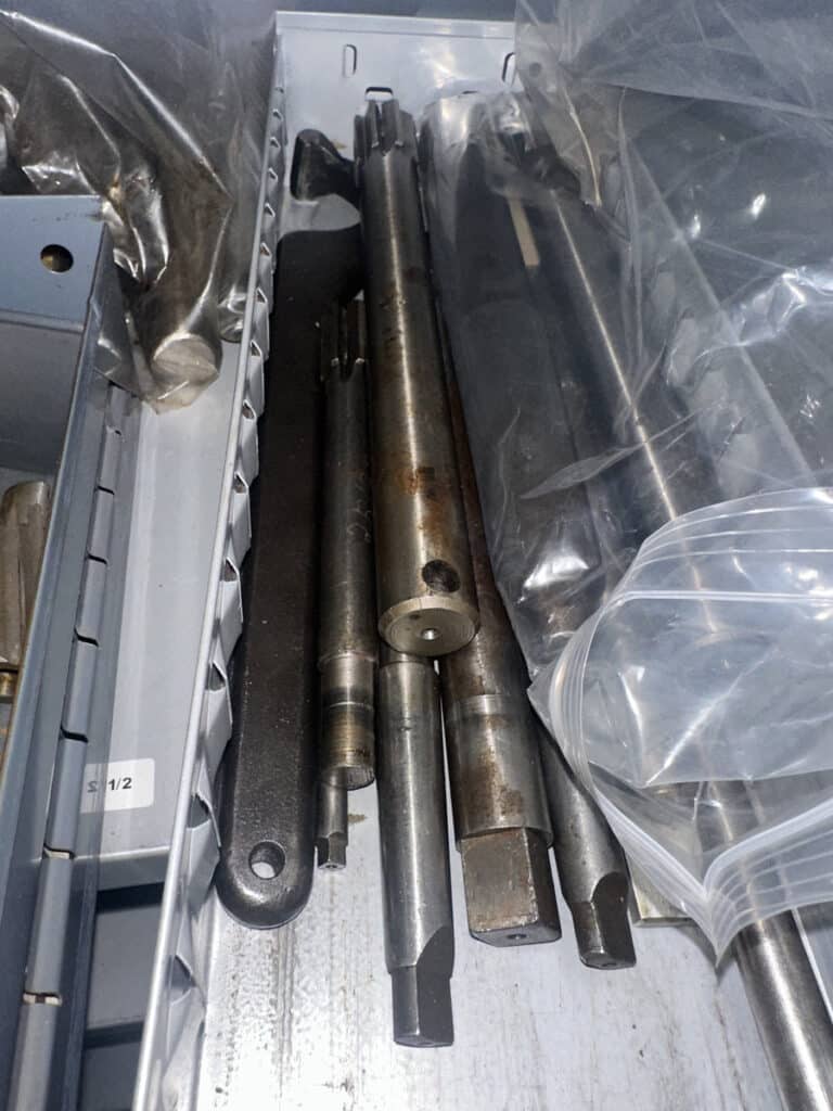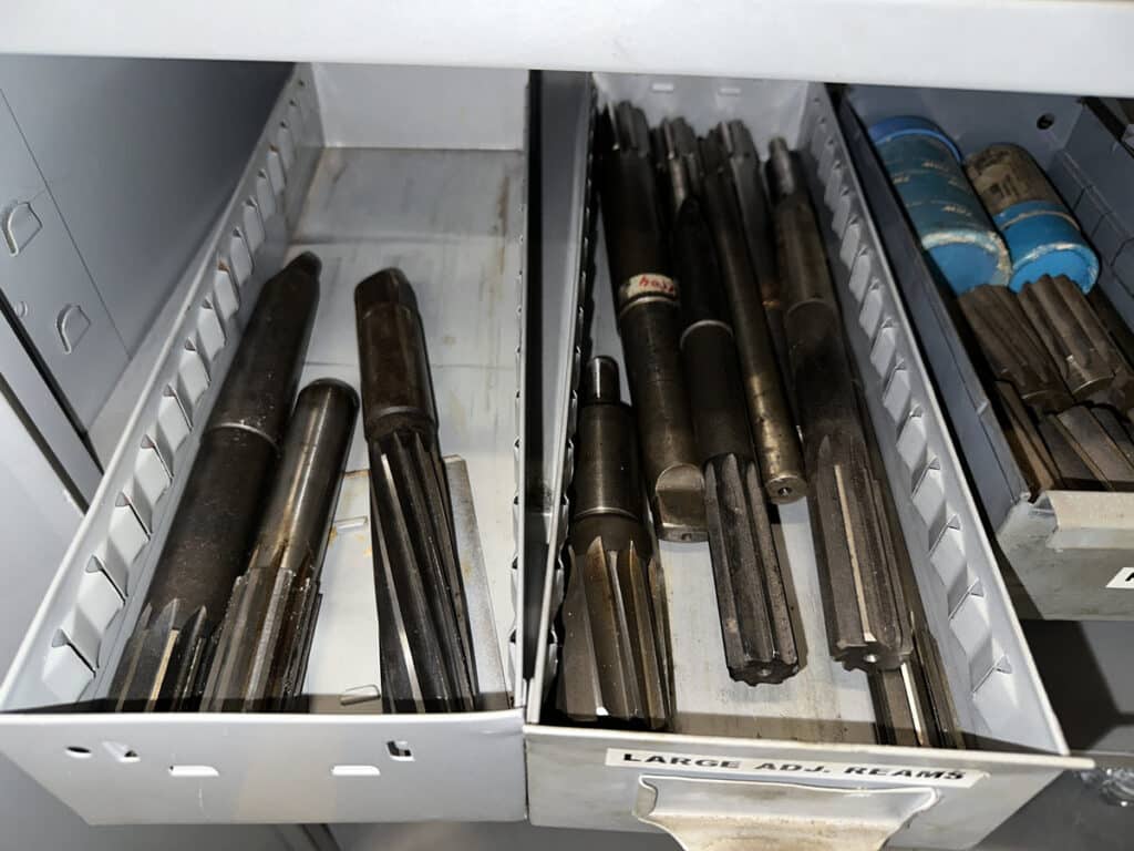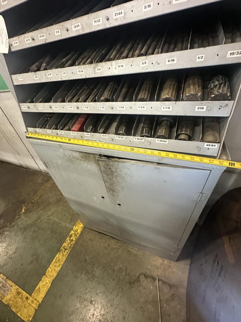 36″ x 19″ x 80″ Metal Cabinet of Assorted Reamers and Burnishing Tools