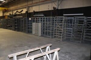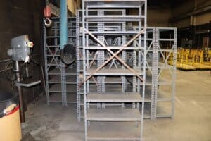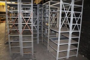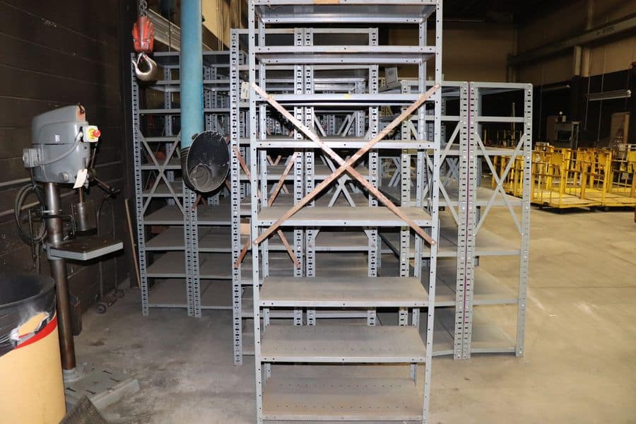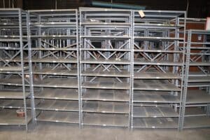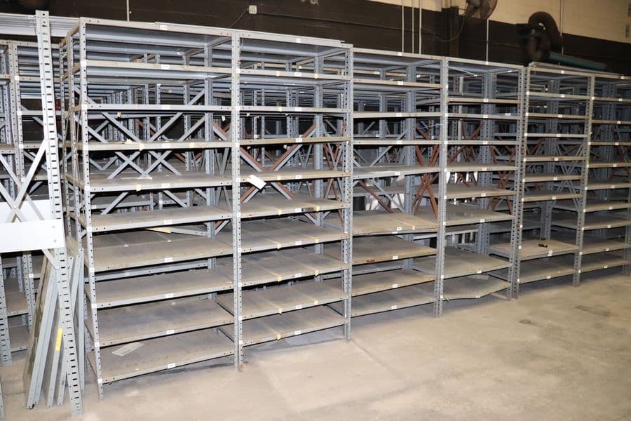 Approximately 120+ sections of shelving available. Price is per shelving unit; the minimum order quantity is 10 units. There are some misc. sizes incorporated.