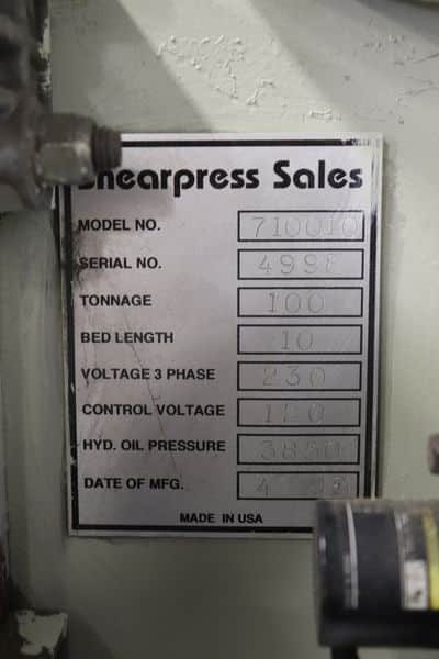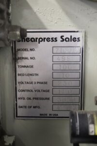 Accurpress 710010 100 Ton x 10′ 3-Axis CNC Hydraulic Press Brake (ETS3000 Control Upgrade)