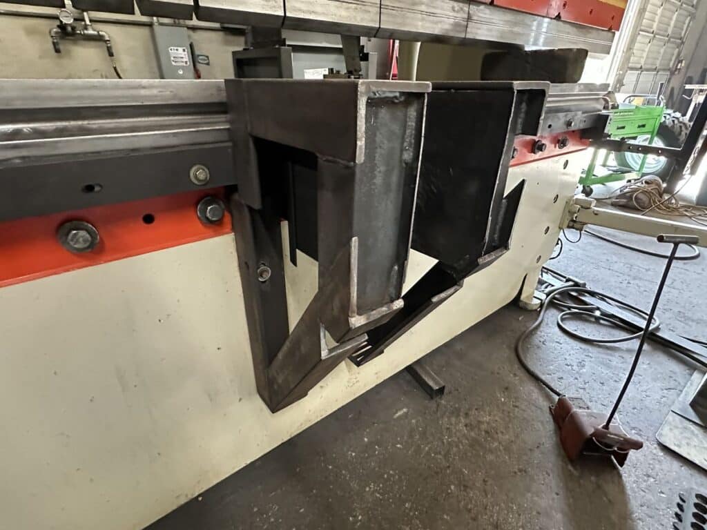 ETS 3000 CNC Control, ETS Pedestal/Foot Control, 2-Axis Programmable Back Gauge (New Ball Screws & Nuts), 10′ Lower 4-Way V-Die, 10′ Segmented Upper Punches, Safety Light Curtain, (2) Front Sheet Support Arms, New Baldor Drive on X-Axis, New Computer & Main Board, New Spare Cylinder, Preventative Maintenance Recently Performed (Including Filter, Breather)