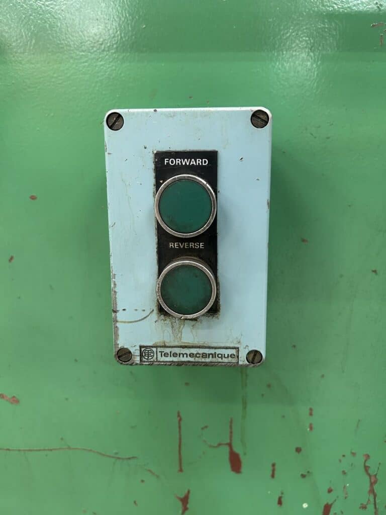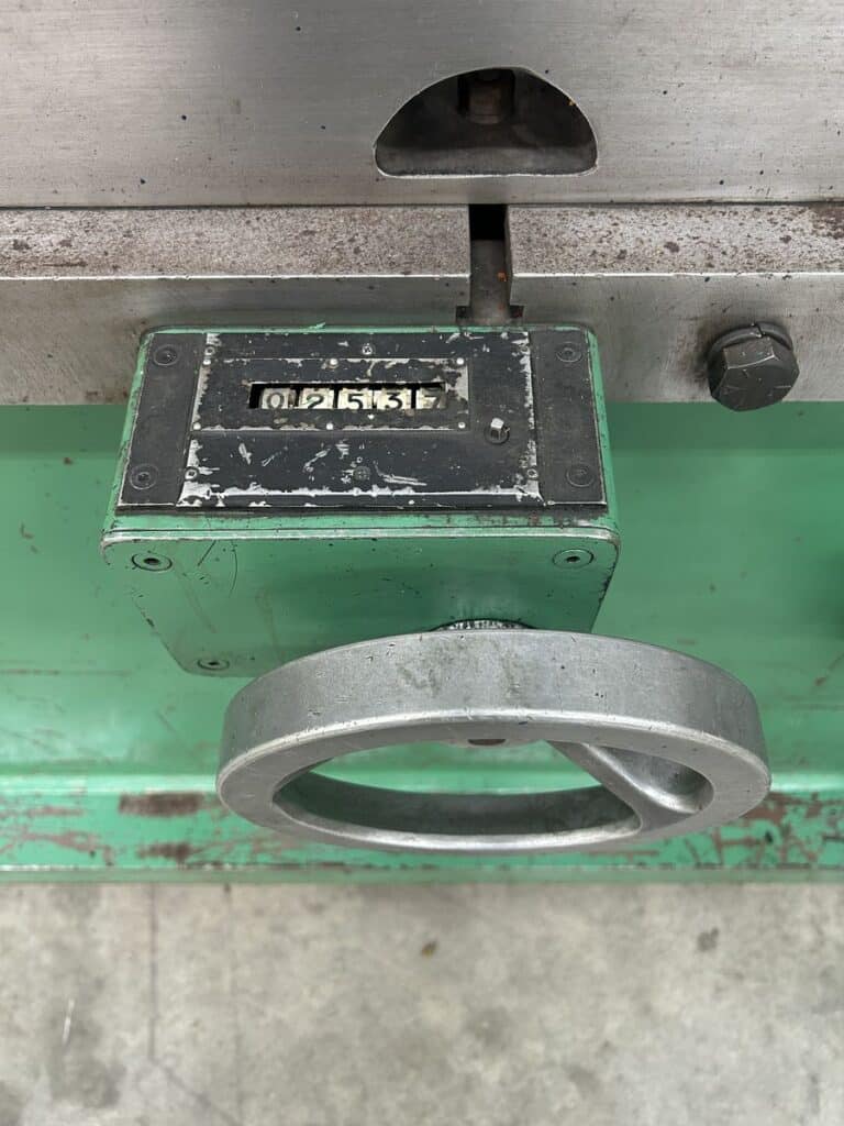 Motorized Back Gauge w/ Mechanical Readout, Pedestal Control, Top & Bottom Dies