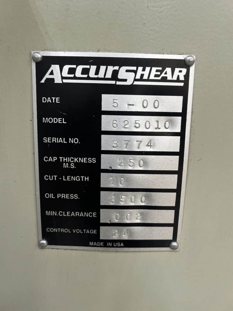 Accurshear 625010 10′ x 1/4″ Hydraulic Shear w/ Programmable Back Gauge