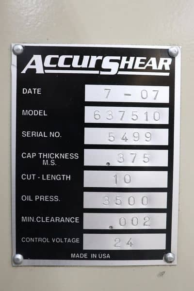 AccurShear 637510 3/8″ x 10′ Hydraulic Shear