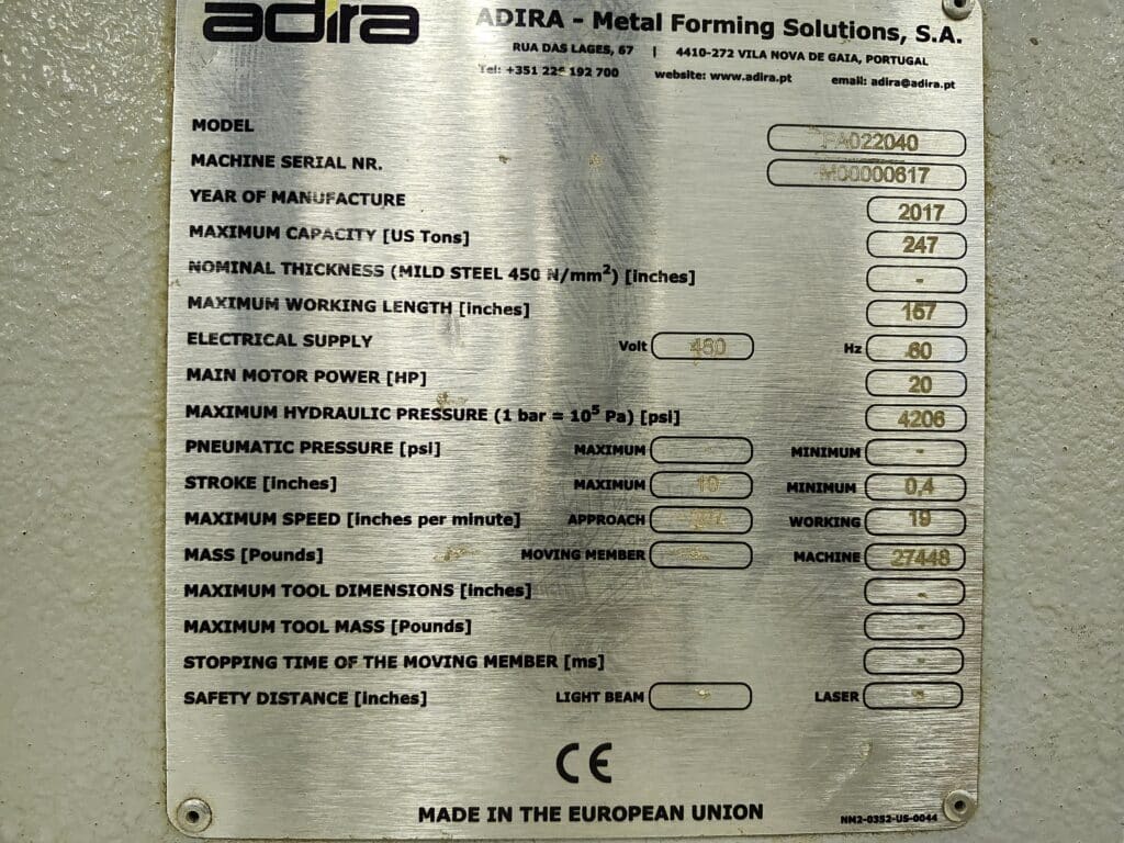 Adira PA 22040 243 Ton x 13′ Hydraulic 5-Axis CNC Press Brake