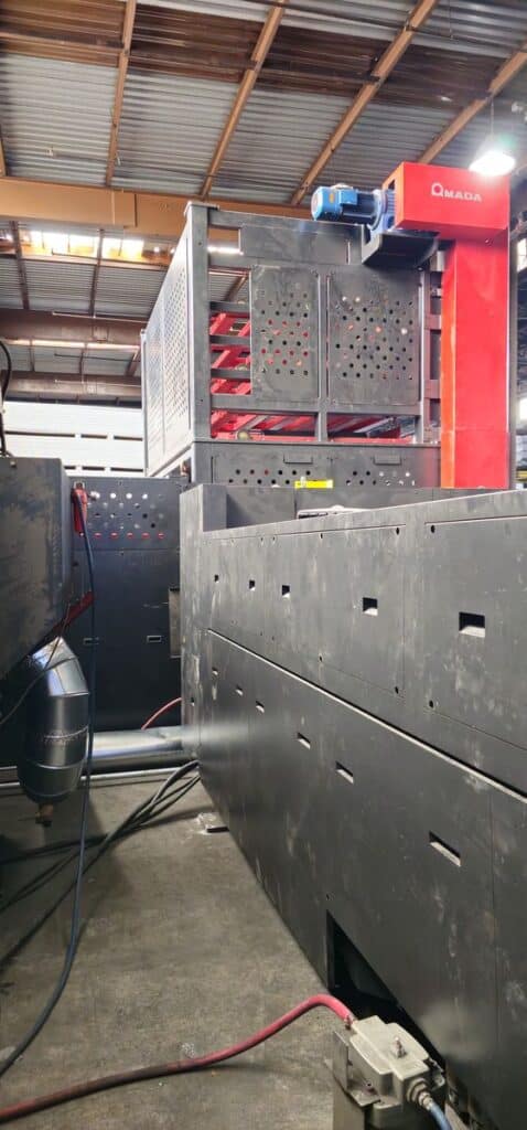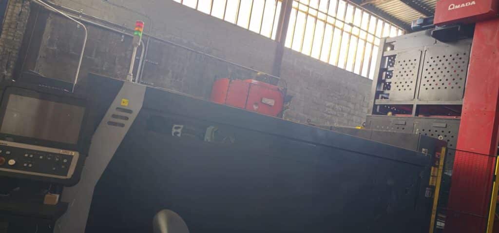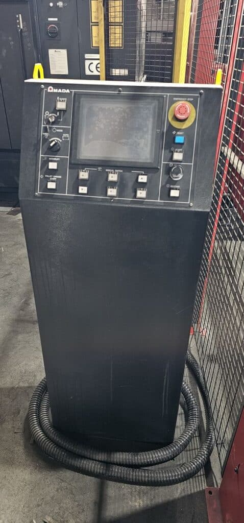 Amada AMNC 3i Control, ASFH 3015G Compact Load Unload System and Tower Storage, 4kW AJ4000L Fiber Resonator, Orion Chiller, Camfil Dust Collector