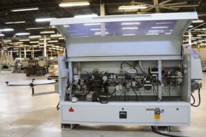 Installed tooling, Sound enclosure, Outboard roller track, Edgebanding feed table, PLC control