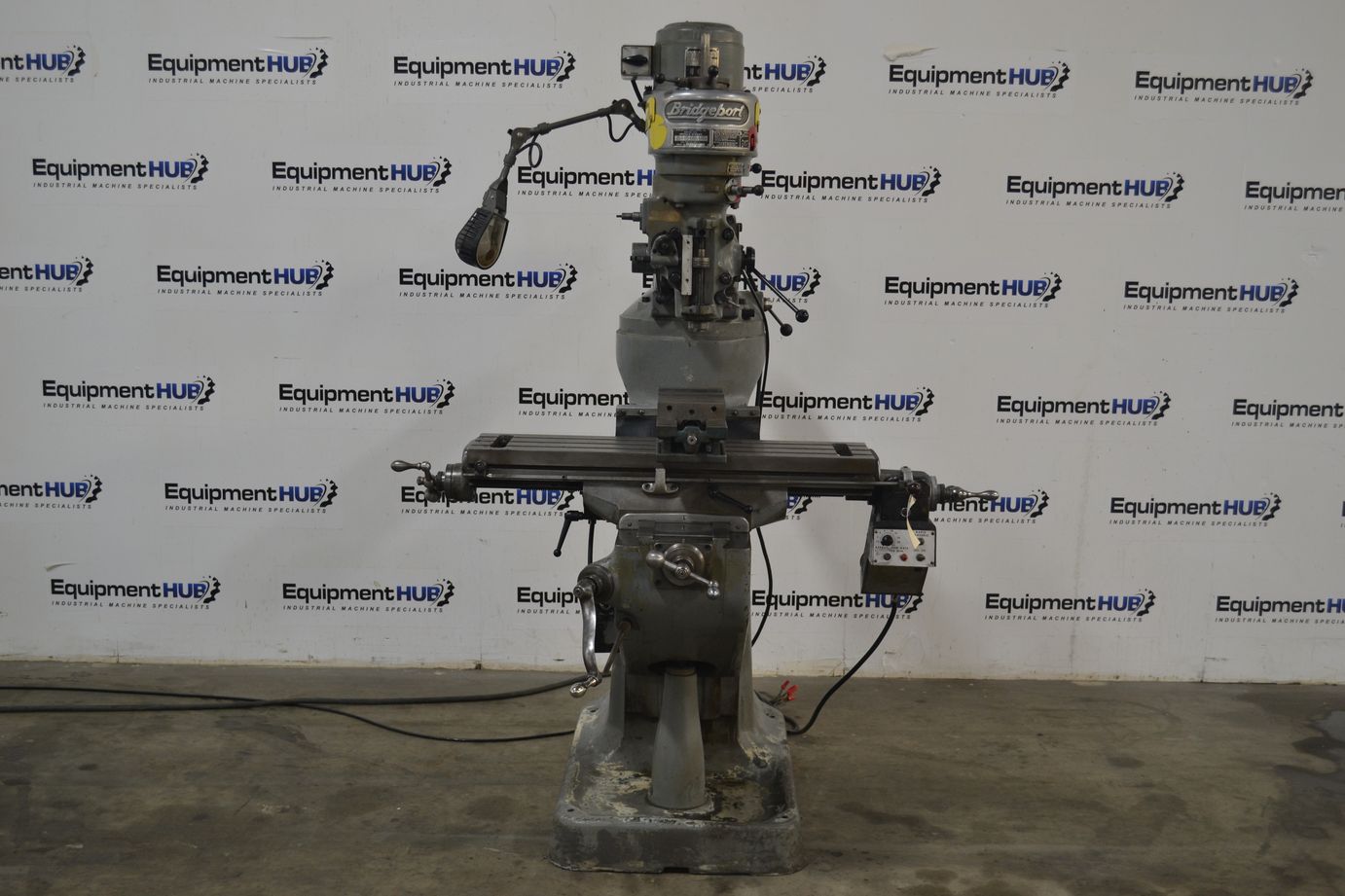 Bridgeport J-Head 9″ x 36″ Vertical Milling Machine, 3600V Kurt Vise & Power Feed