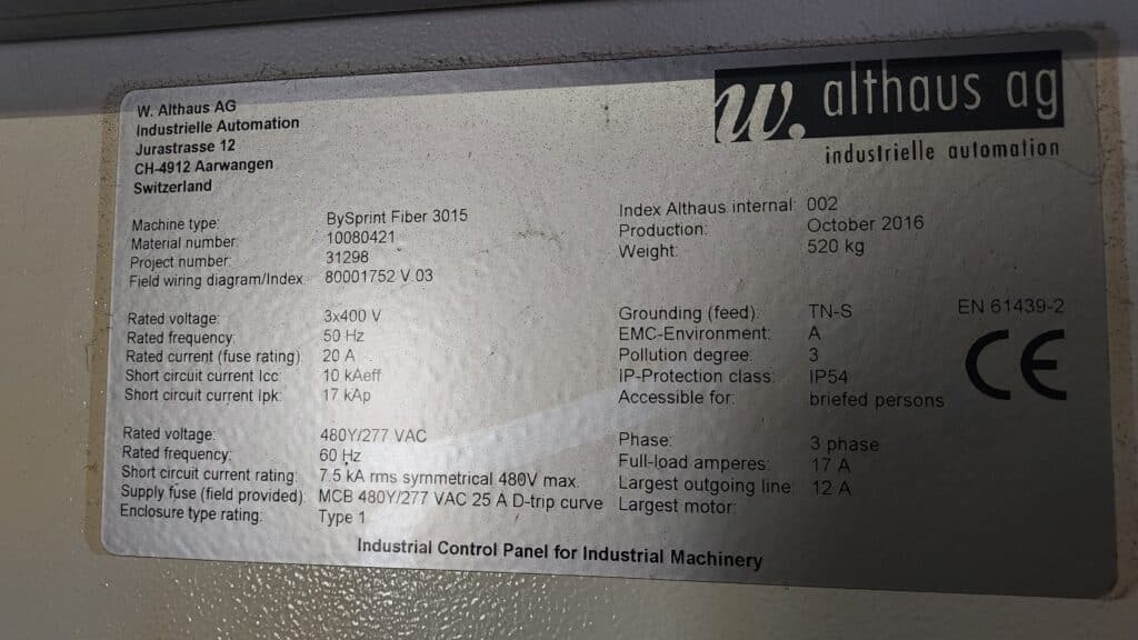 Bystronic Bysprint Fiber 3015 6000 Watt Laser Cutting Machine (2016)