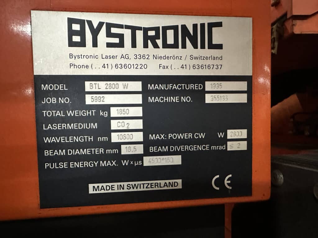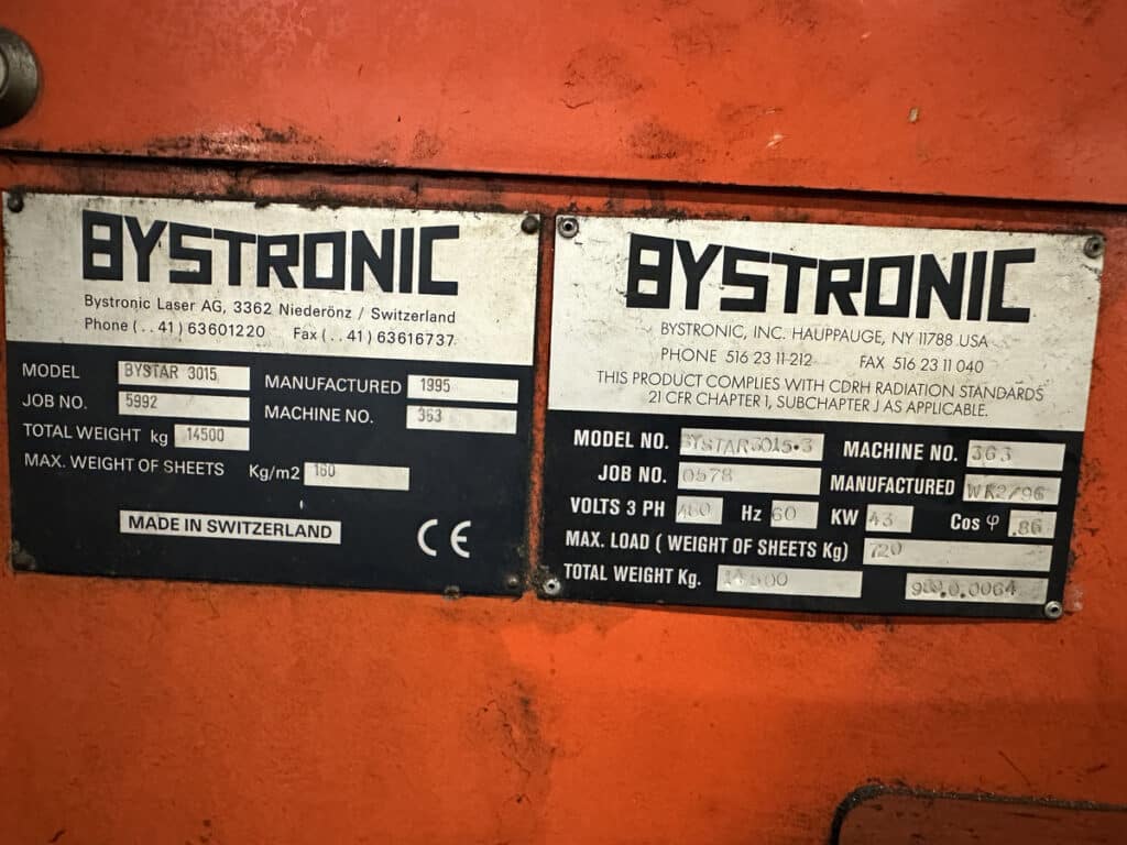 - Control System: Bystronic CNC Controller