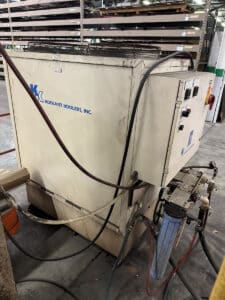 Bystronic Control Cabinet, Bystronic Handheld Controller, Dual Shuttle Tables, Metal Plate Vacuum Lifter, (2) Spare BTL Laser Heads, Koolant Koolers HCV 10,000- 2PR NF-2FILT Chiller, Torit Donaldson DF 2DF8 Dust Collection System, Cart w/ Spare Parts, Approx. 56′ L x 27′ W x 25′ H 1/2 Ton Overhead Crane Rail System w/ Budget 1/2 Hoist, Manuals and Service Records Available
