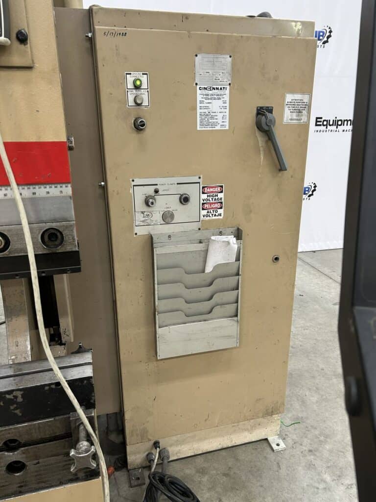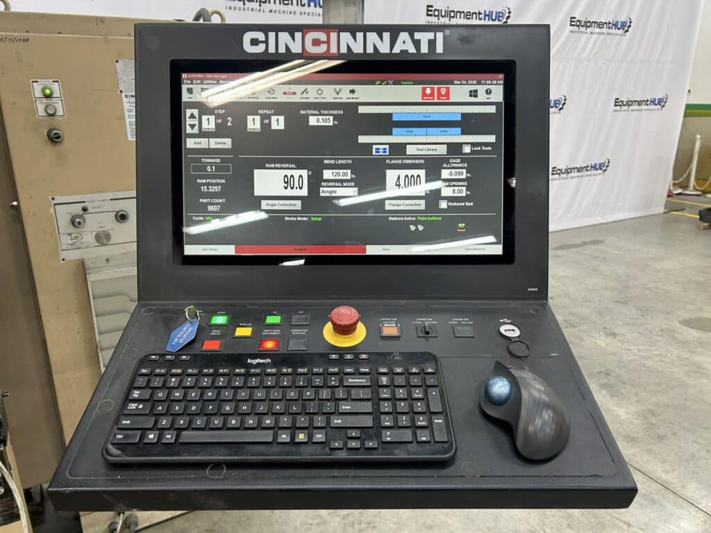 2022 Control Retrofit Upgrade, Touch Screen Controller w/ Autoform CNC Software, 2-Axis Back Gauge, Cincinnati Manual Gage Pendant Controller, Pedestal/Foot Pedal Operation, Willa 50157L Punch Holder