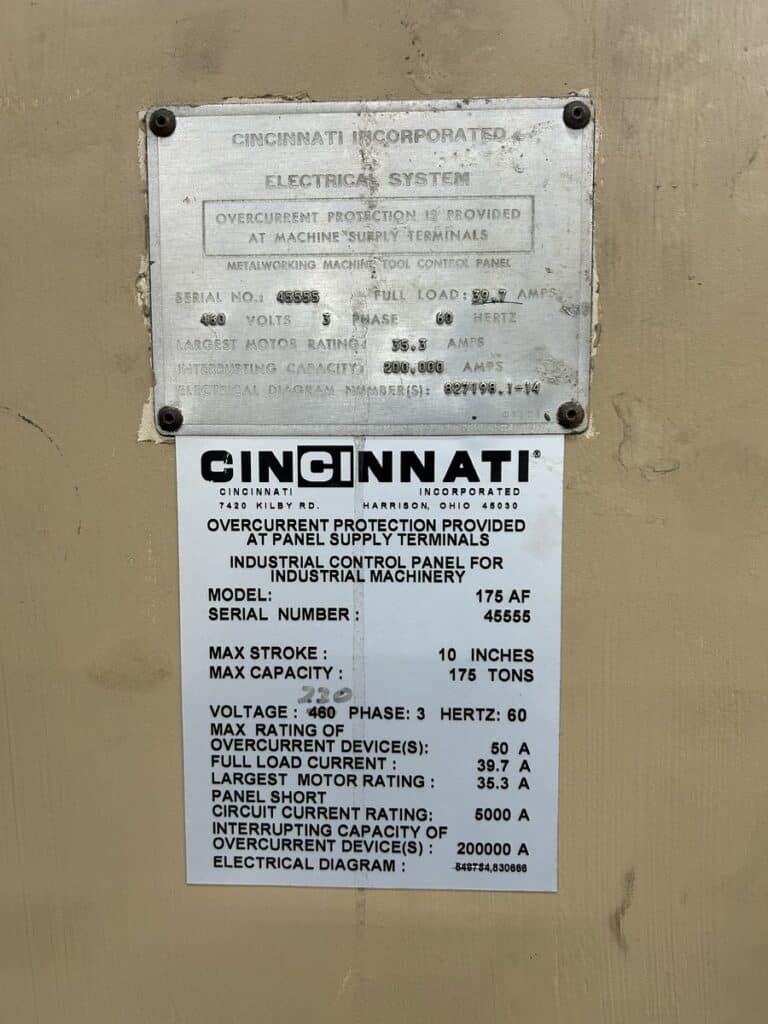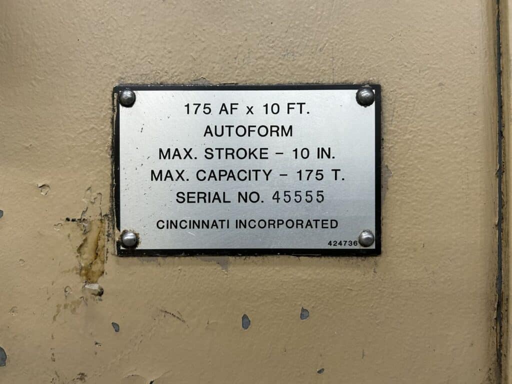 Cincinnati 175 AF10 Autoform 175 Ton x 12′ CNC Press Brake (2022 Control Retrofit Upgrade)