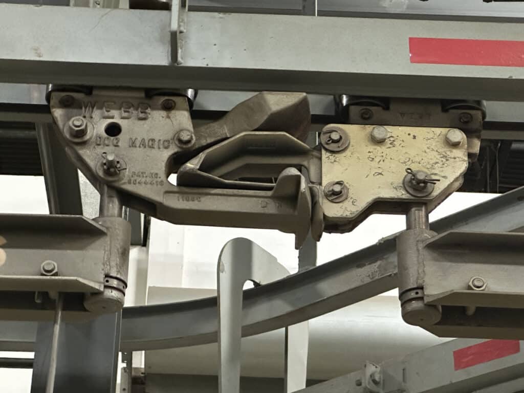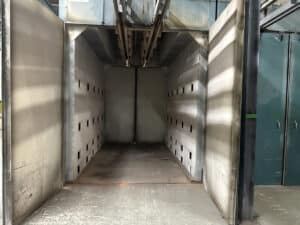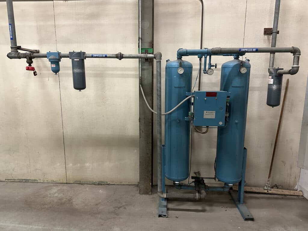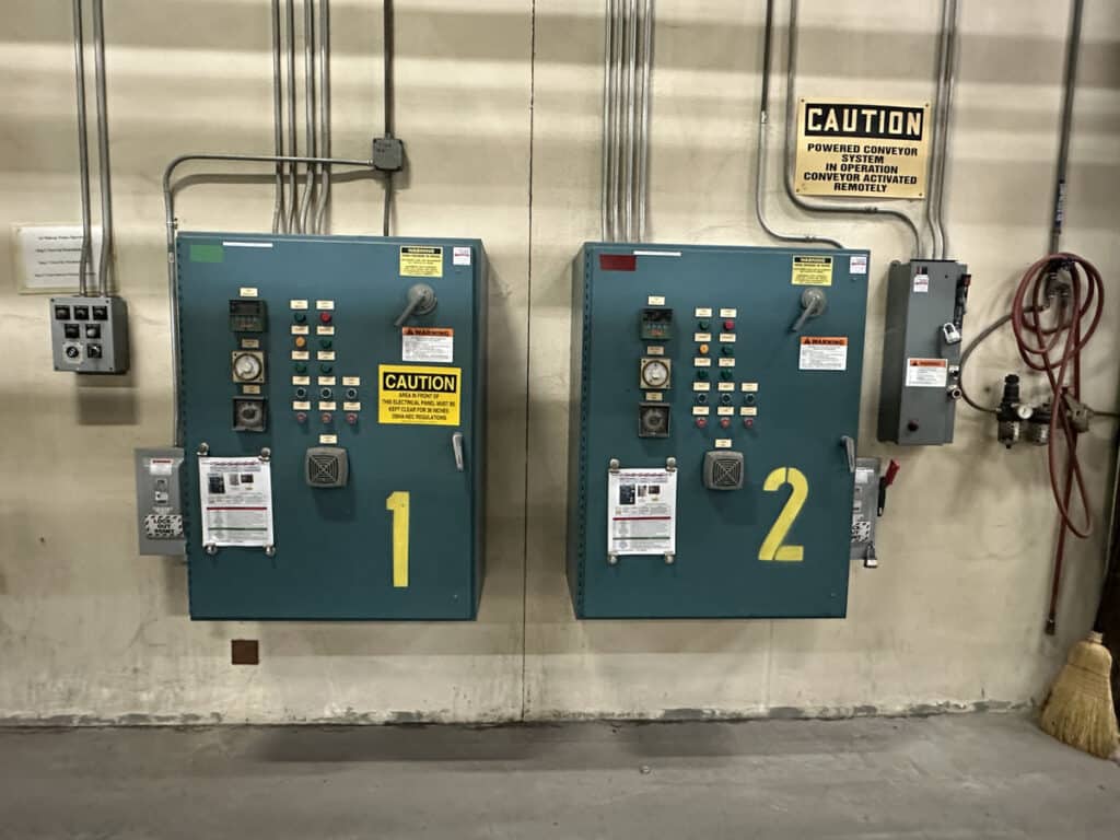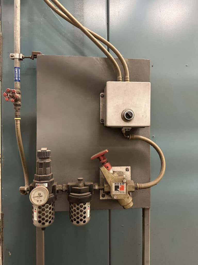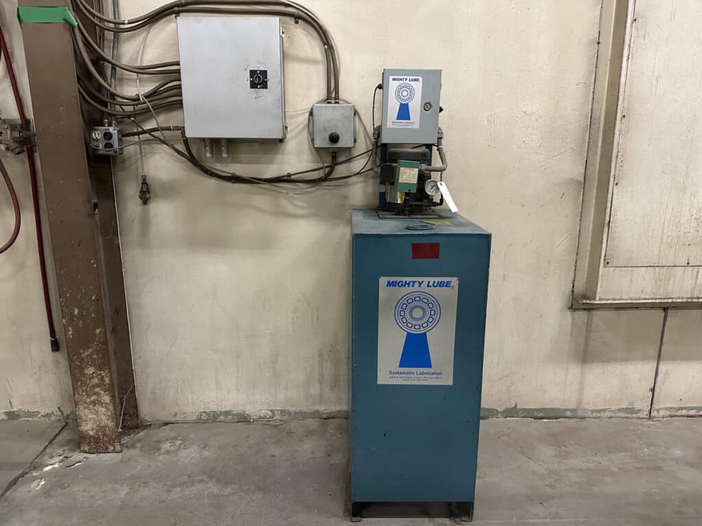 NORDSON 524 Reclaim Powder Booth System, 5′ x 6′ Opening, 16′ x 7′ x 8′ Chamber: (2) Versa-Spray Paint Units and Spray Guns, (2) Nordson Fire Sensors, Nordson Rotary Sieve Unit, (4) Nordson 100 Plus Powder Transfer Pumps, (4) Color Module Fluidize Hoppers, Bulit In Air Filtration, Exhaust, Fan / Blower System, (2) Steel Stair Platforms, Approx. 100 ft Water Hose, Interior Chamber LED Work Lights (2) Thermal Engineering 13’6″ L x 8′ W x 10′ H Walk-In Powder Coating Bake Ovens Jervis Webb Overhead Powder Coating Conveyor Line w/ Mighty Lube 7065B Automatic Lubrication System: Approximately: 400 ft of conveyor line, (1) Mighty Lube 7065B Automatic Lubrication System, (2) Mighty Lube 5054 Rail Lubricators, Approx. (10) Vickers 250 psi Hydraulic Cylinders, (4) Control Box / Switches, (4) Ross Pneumatic Regulators, Pressure Gauge and Filtration Systems. Arrow Pneumatics Model 209 Twin Towers Regenerative Air Dryer: (2) Steel Fab Air Receiver Tanks MAWP 200 PSI at 500°F.