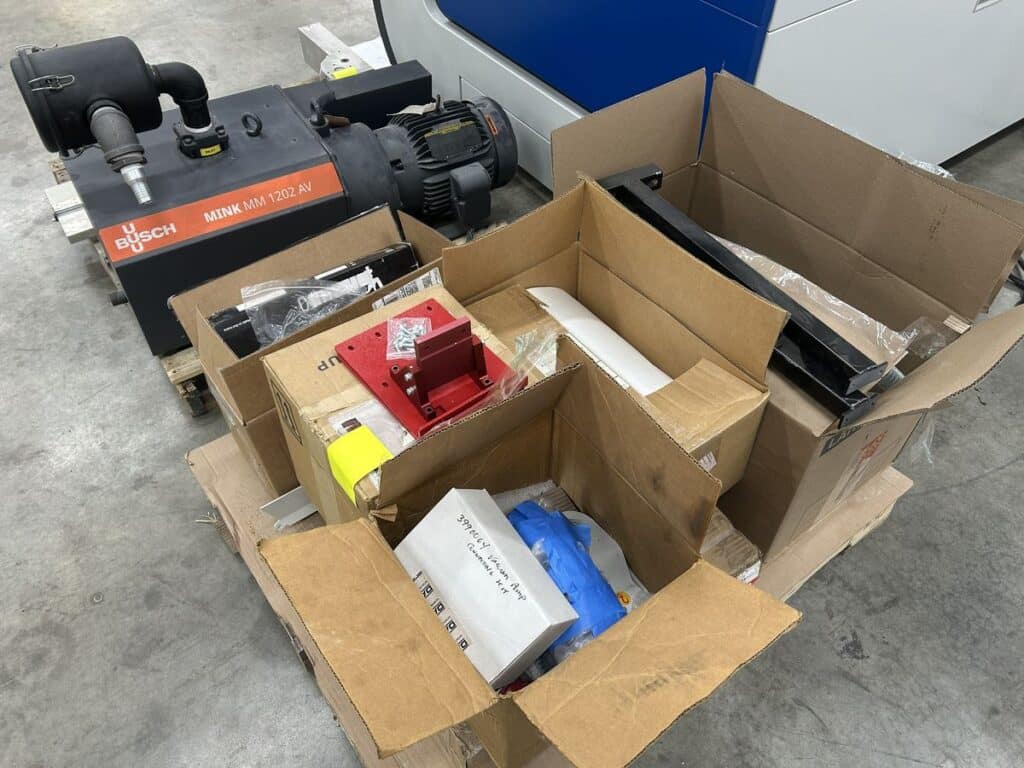 Knoll 500 K-1 Chip Conveyor System, Auto Tool Management Software, Cooling Lubrication System, Precision Tool Length Sensor, Vacuum Distributor, Vacuum Table, PDA Pro 4th Rotary Axis, High Precision 3D Touch Probe, Spare Spindle, Busch Mink MM 1202 Vacuum Pump, Hydac Cooling System, Misc. accessories, Manuals