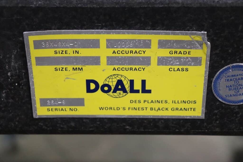 DoAll 36″ x 48″ x 4″ Granite Surface Plate, .0008″ Accuracy, Grade B