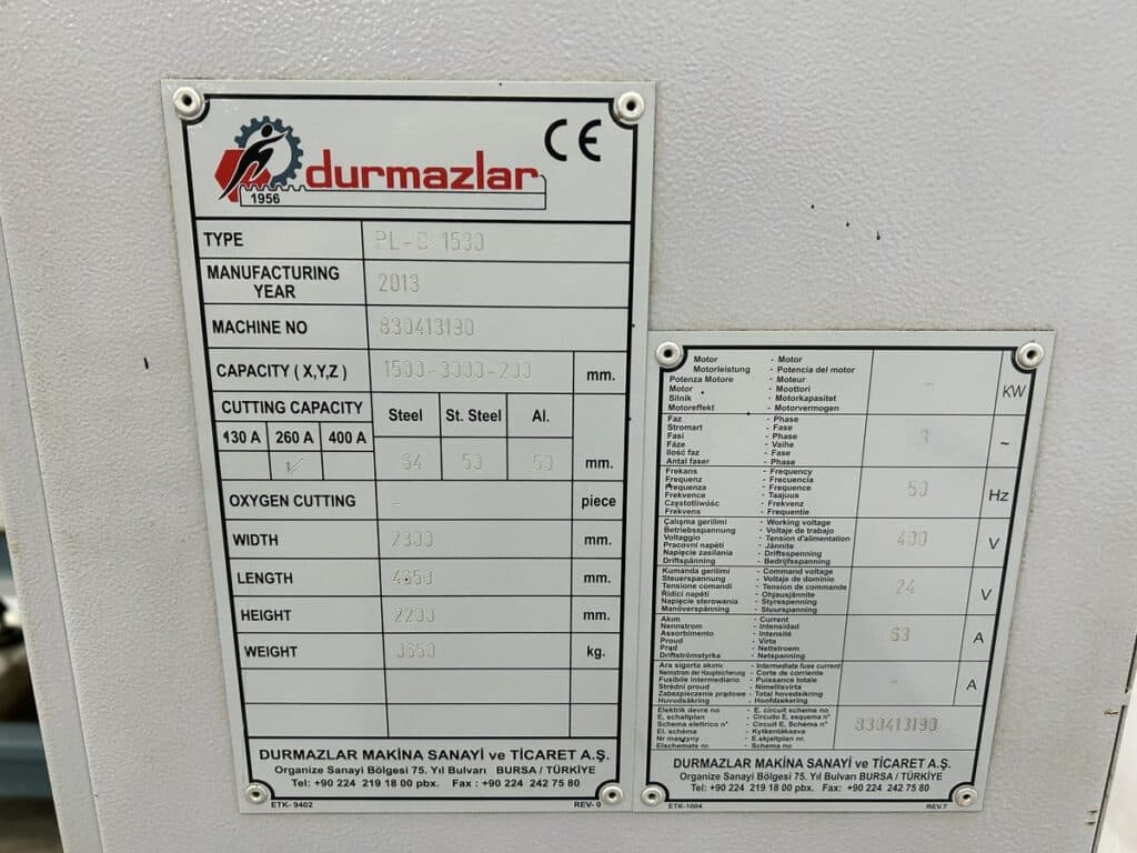 Durma PL-C 1530 5′ x 10′ CNC Plasma Cutting Machine (Not Working)