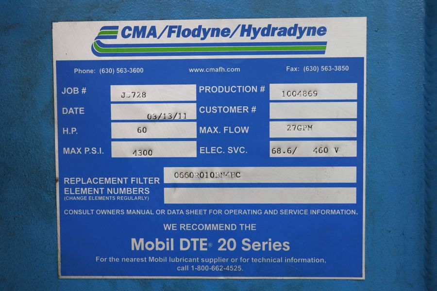 - Hydraulic Power Unit: 60HP @ 1800 RPM
