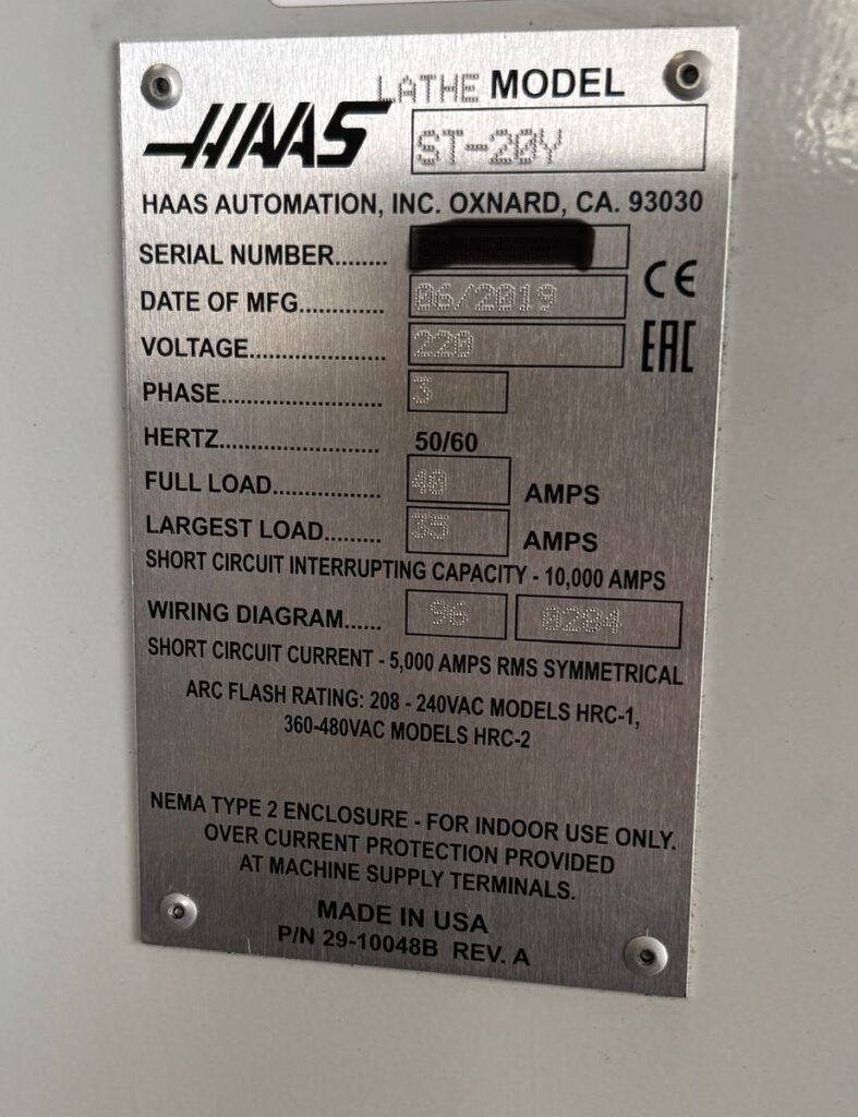 HAAS CNC Control, 15″ Color LCD Monitor, High Torque C-Axis w/ Live Tool, Haas Bar Feeder, Programmable Tailstock, Live & Standard Tooling, Automatic Tool Presetter, Chip Conveyor, Parts Catcher, USB Port & Ridgid Tapping, Cooland System, High Intensity Lighting, Enclosure Exhaust System, Media Display M-Code, Auto Door, Ethernet Interface, WIFI Connection for Haas Control, Early Power Failure Detection Mode