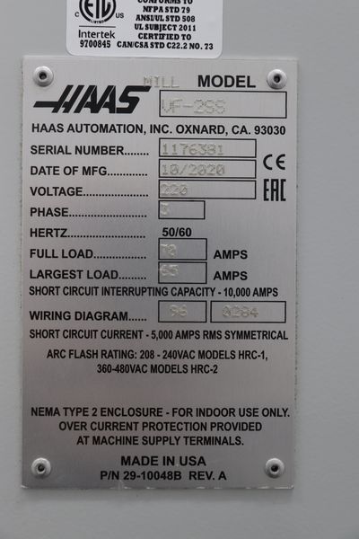 Haas VF-2SS CNC Vertical Machining Center, VMC w/ 4th Axis (2020)
