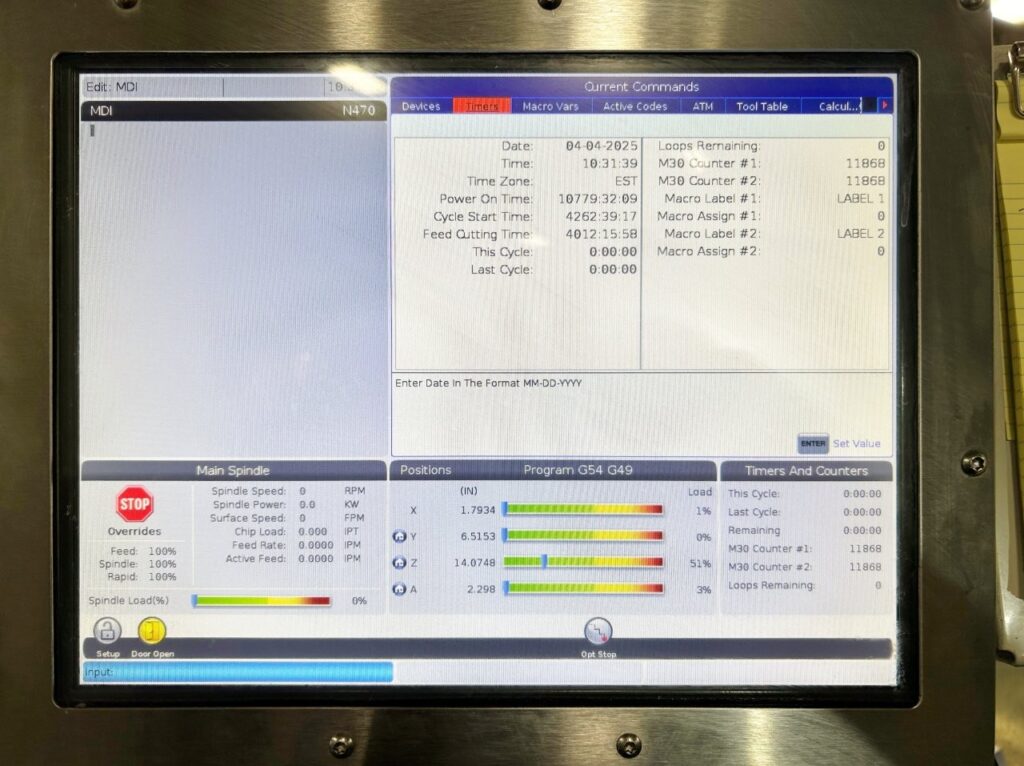 Haas NextGen Control, Haas HA5C Indexer, 4th Axis Drive & Wiring, Renishaw Probing, Side-Mount Tool Changer, 12,000 RPM, High-Speed Machining, Programmable Coolant, Chip Auger, Chip Tray Filter Kit, VPS Editing, Rigid Tapping