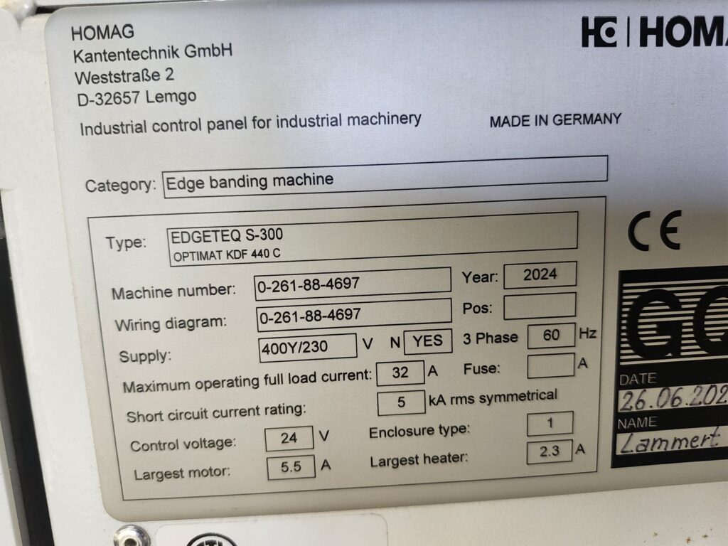 Homag Edgeteq S-300 Edge Bander w Conveying System (2024 – New in shipping crate)