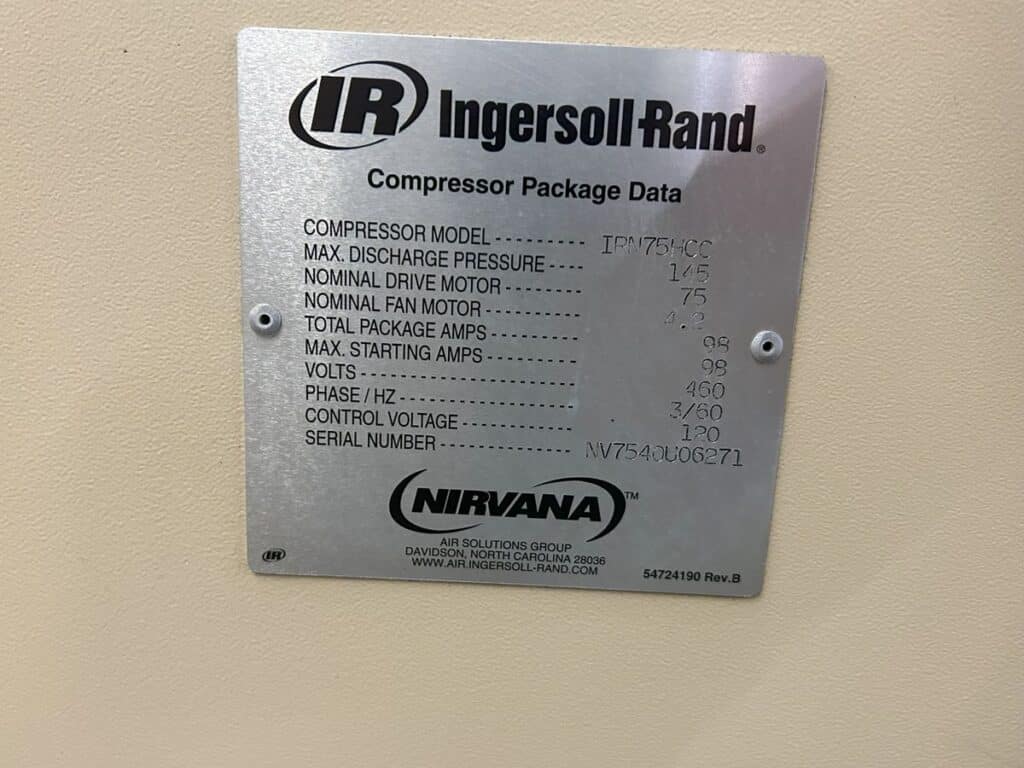 The Ingersoll Rand Air Compressor requires a new VFD drive.