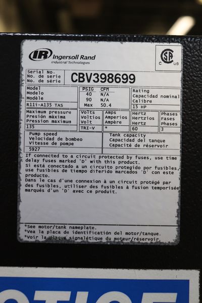 Ingersoll Rand R11i-A135 TAS 15HP Rotary Screw Air Compressor w/ Integrated Air Dryer