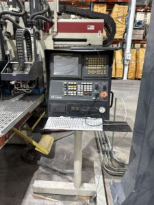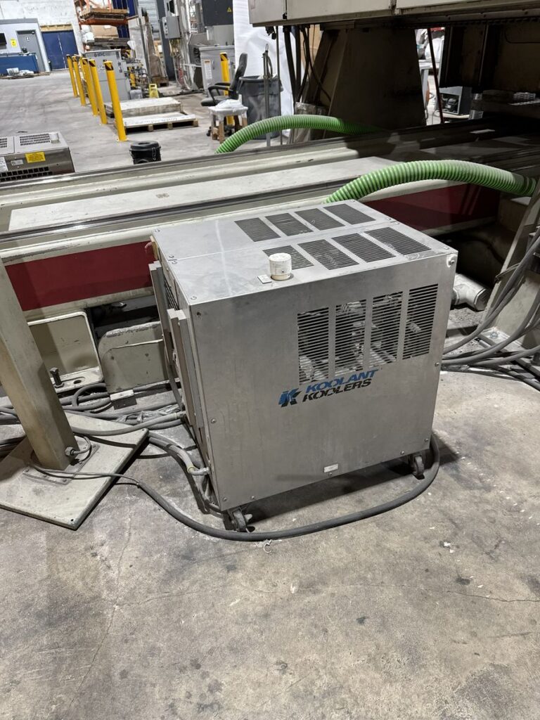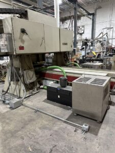 Komo-GE Fanuc Controller, Koolant Koolers Spindle Chiller, Twin Spindle, At Spindle Tool Changers, (4) 1″ Part Locating Pins, Extended Z-Axis, Vacuum Pump