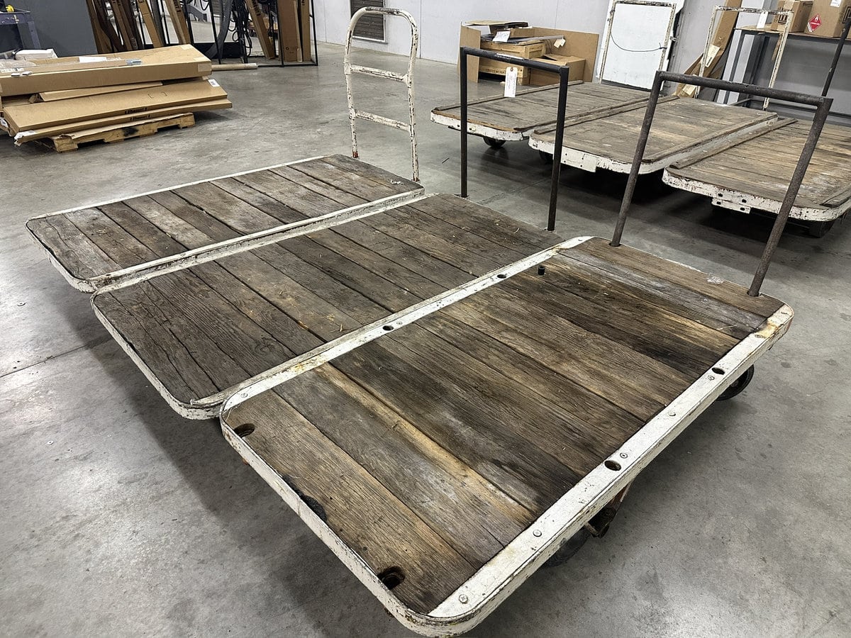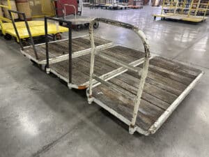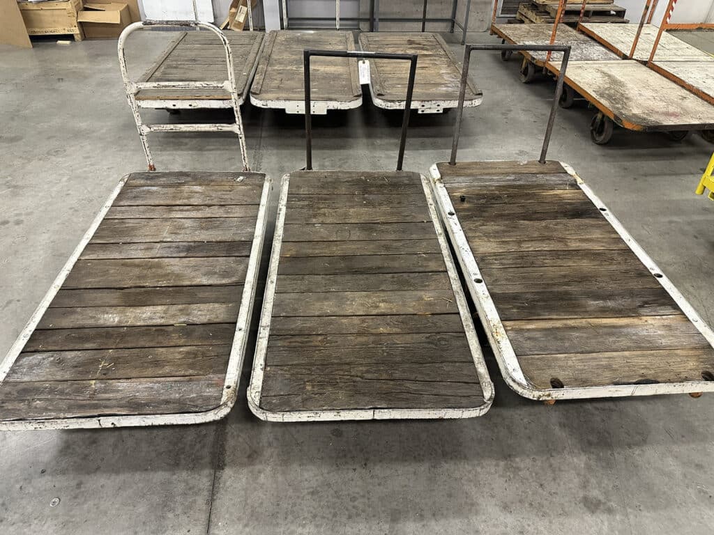 Lot of (3) 72″ L x 36″ W x 41″ H Steel Frame, Wooden Deck Platform Trucks (White)