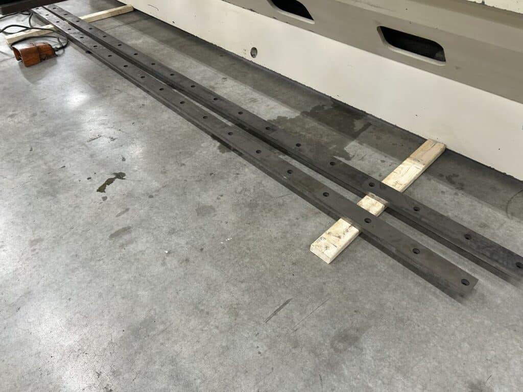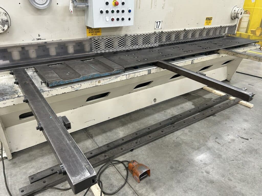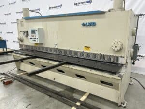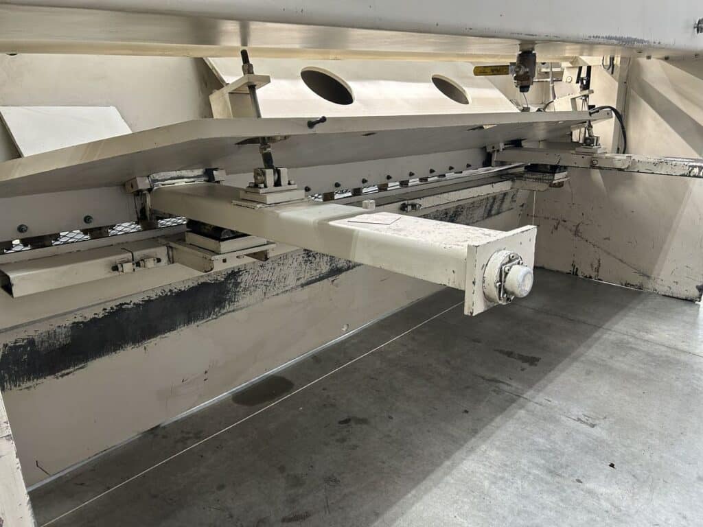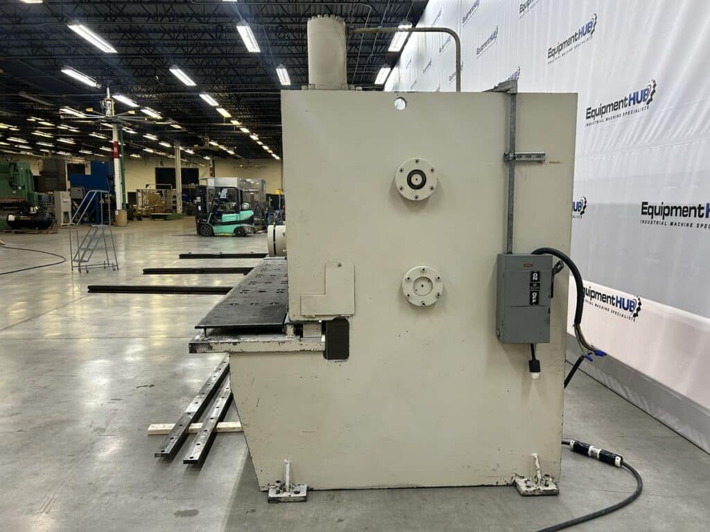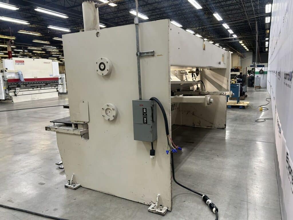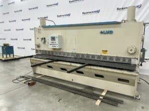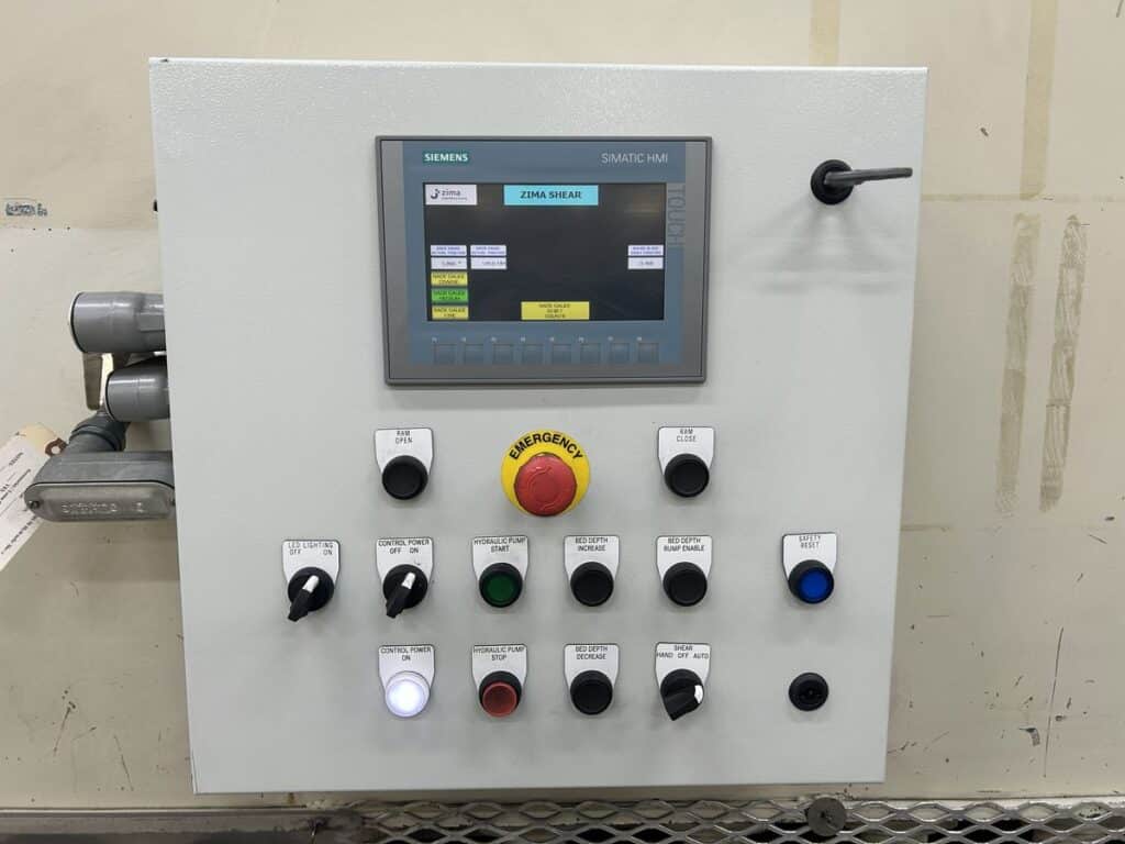 Front Operated Back Gauge Control with Positional Digital Readout, Squaring Arm, Front Arm Supports, Hydraulic Rake Angle Adjustment, Manual Blade Gap Adjustment, (2) Extra used blades