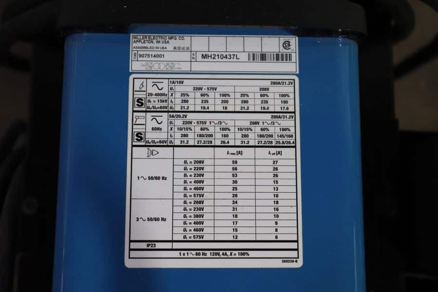 - Output: TIG 3-Phase: 2:280 A (AC), 1:280 A (DC), TIG 1-Phase: 2:280 A (AC), 1?280 A (DC), Stick 3-Phase: 5:280 A, Stick 1-Phase: 5:280 A