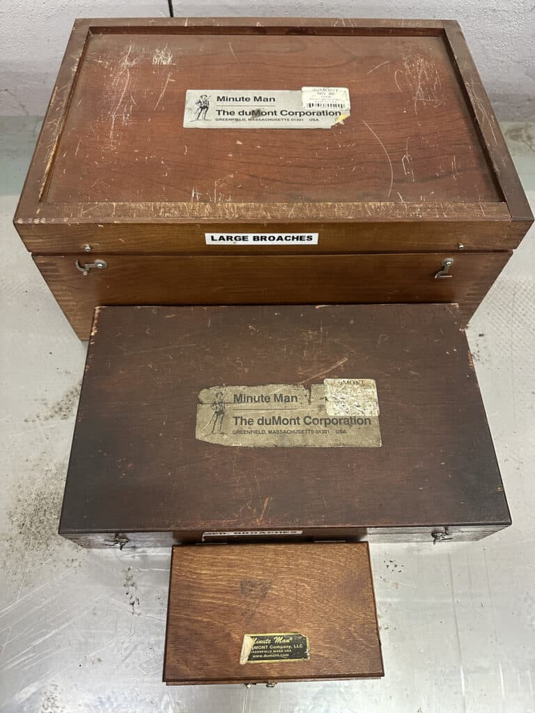 Minute Man / Dumont 3 pc. Set of Small, Medium and Large Keyway Broach Tooling in Original Boxes