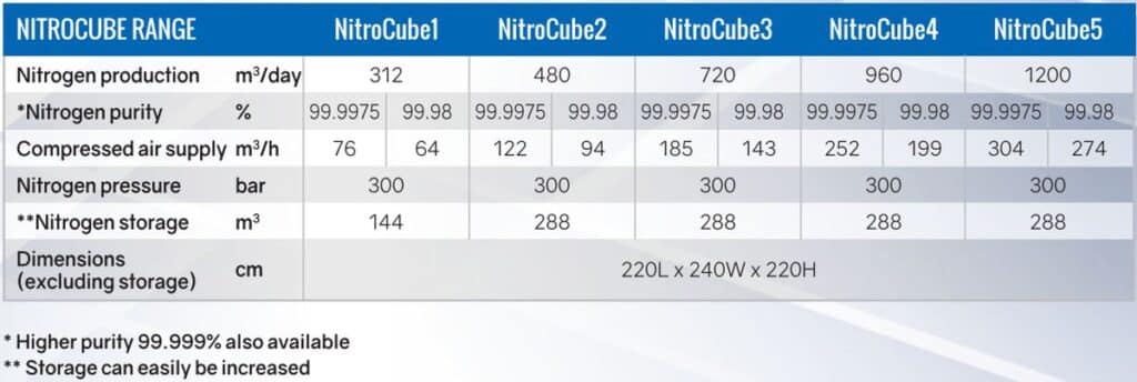 - Air Requirement to the NitroCube: 147 cfm @ 145 psi