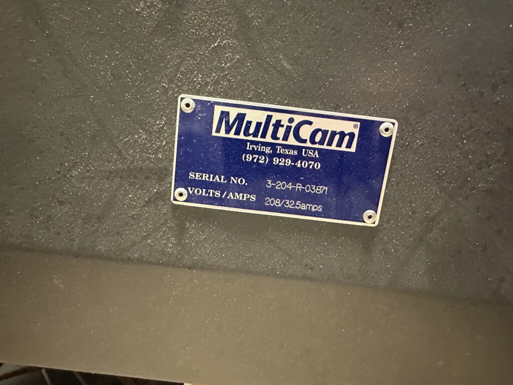 Multicam Pendant Control, Multicam Vacuum Pump, 8 Capacity Bar Style ATC, Vacuum Table, Tool Height Sensor, Auto Mister, Colombo Spindle