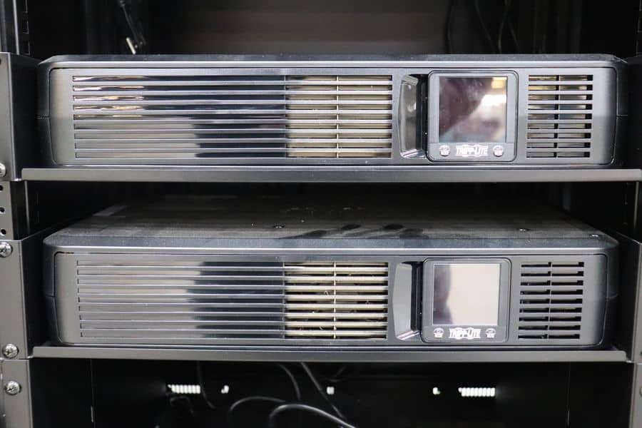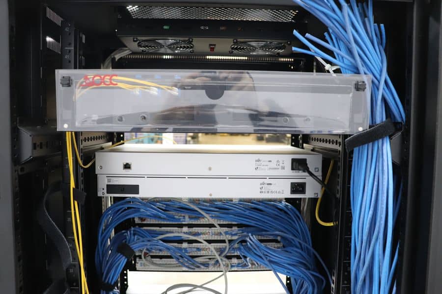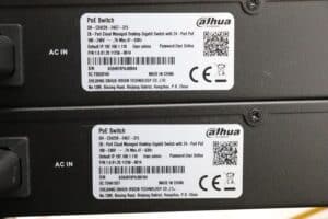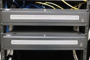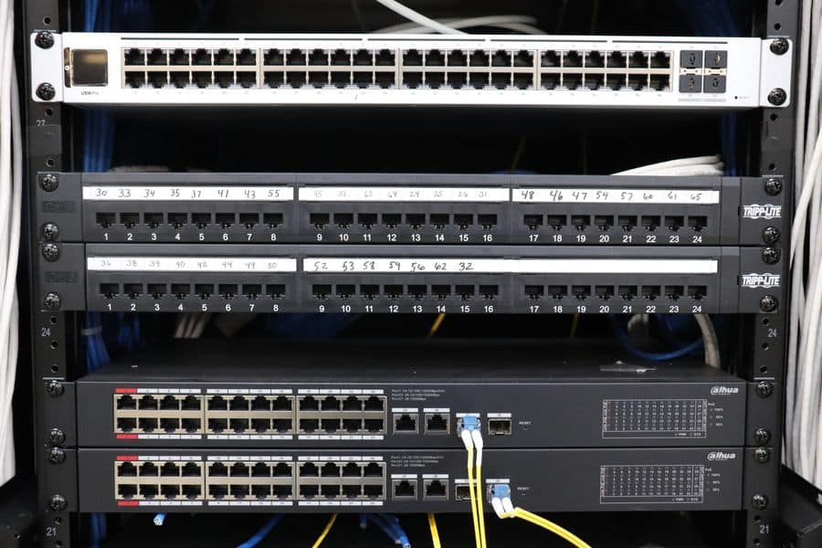 UniFi Switch 24 250W 1U Fiber Switch, UniFi Network Pro 48 POE 1U Switch, (5) Trip-Lite Cat 6 24 port 1U Patch Panel, Dahua 28 Port Cloud Managed 1U POE Switch, (2) Dahua 2U Network Video Recorder, (2) Trip-Lite Uninterrupted Power Supply