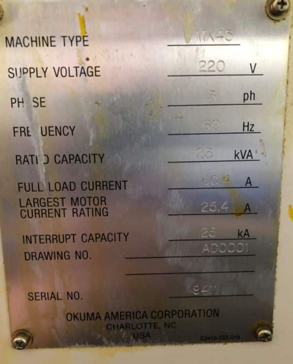 Okuma OSP7000M Control, 20 Station Tool Changer, MPG Handwheel, 30kva Transformer, Kurt Vice