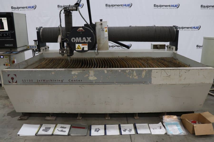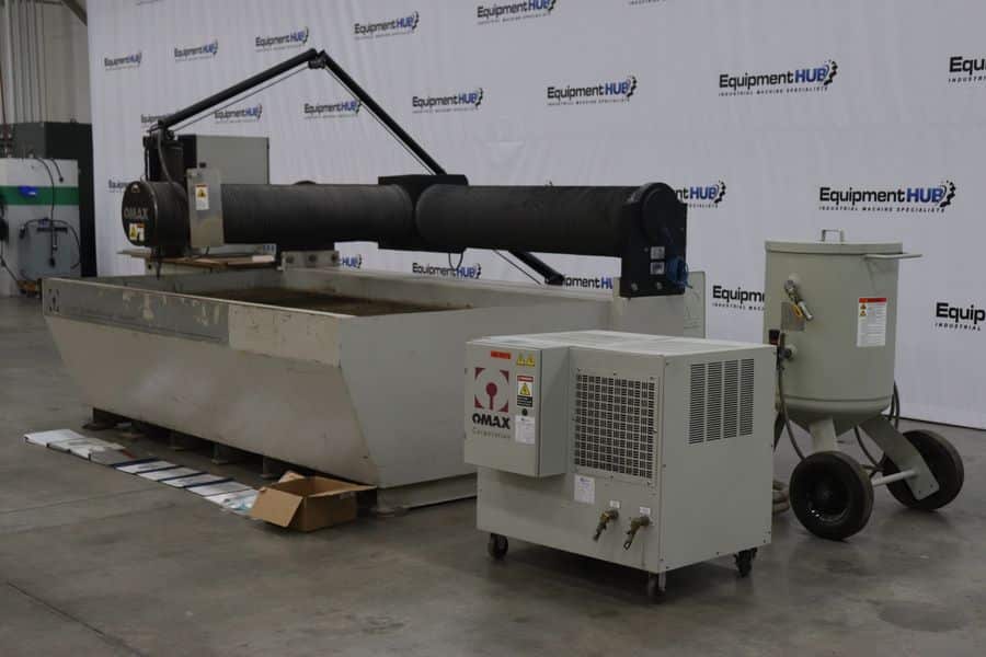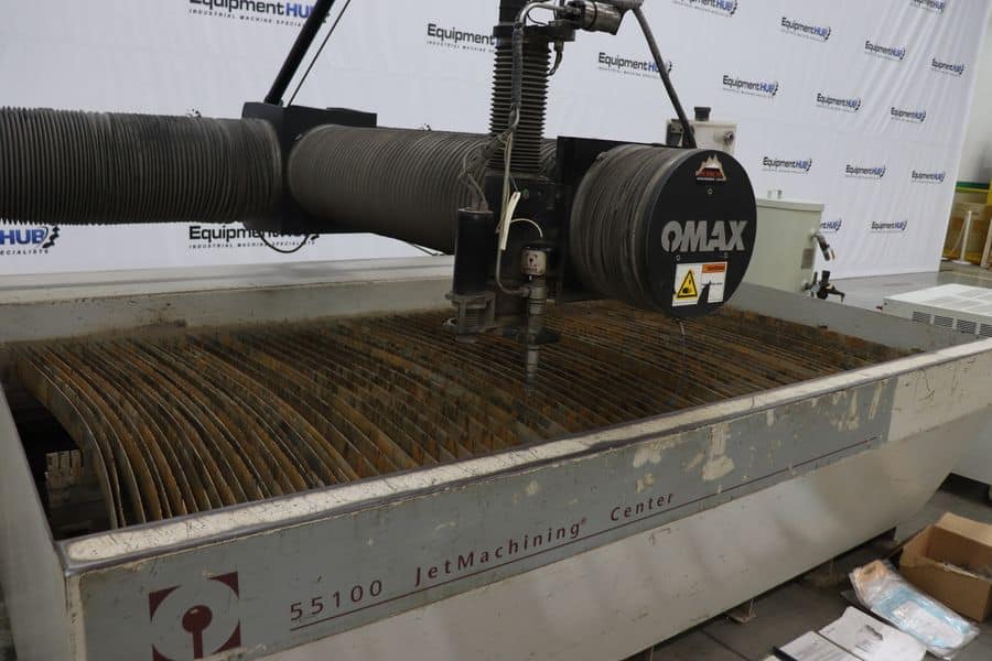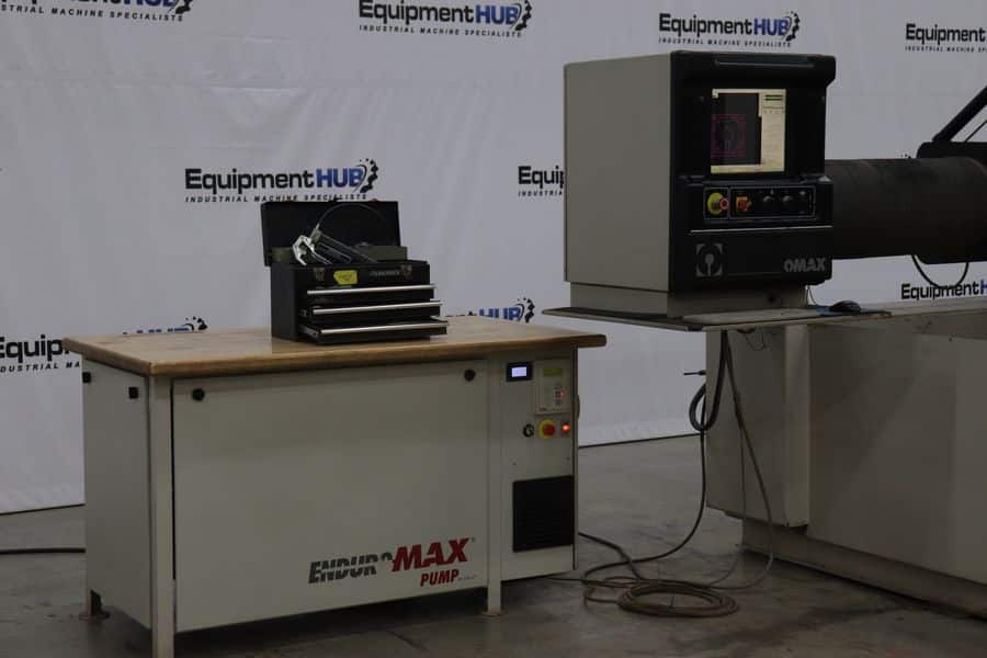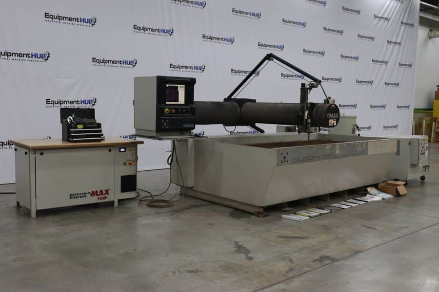 The Omax Intellimax CNC Waterjet can be demoed upon request. Check out the video on the listing to see the machine in motion.