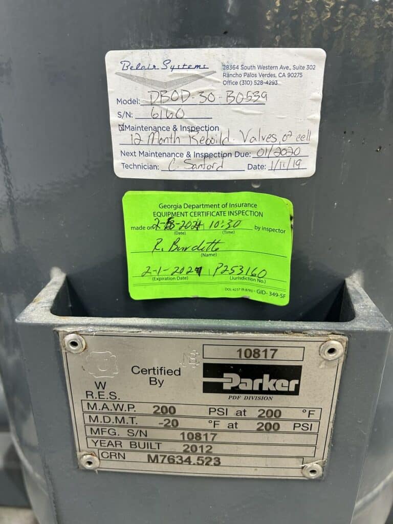 Parker DBOD-30 Dual-Bed Nitrogen Generation System w/ Tanks