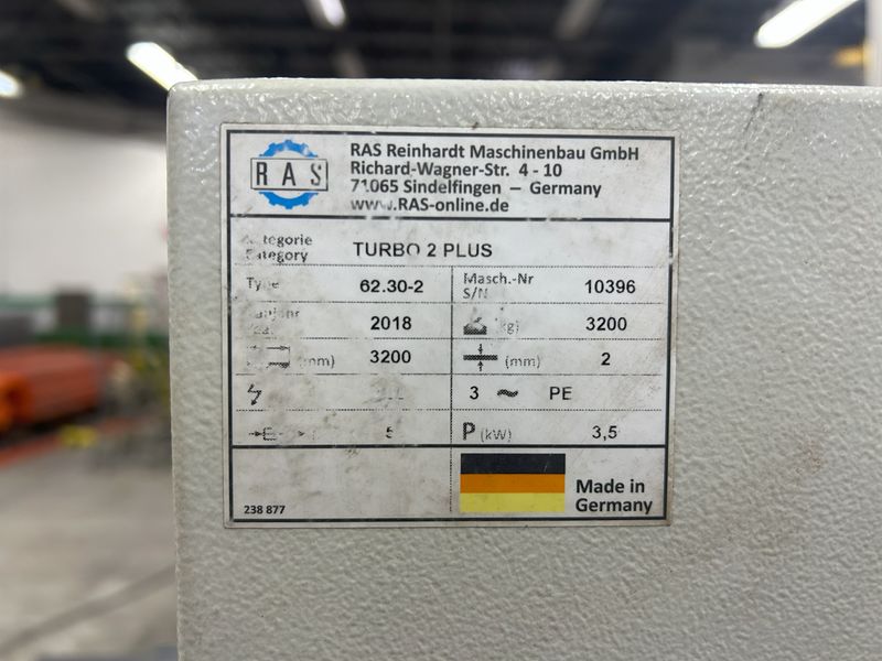 RAS 62.30-2 Turbo 2 Plus 14 Ga. x 126″ CNC Folder, 2018 (Includes Factory Warranty and Install)