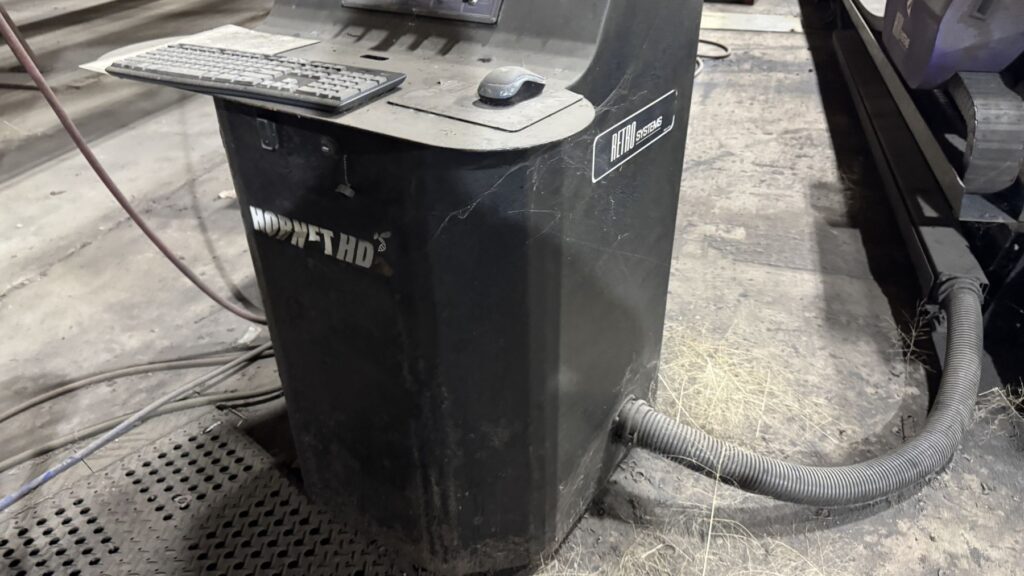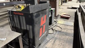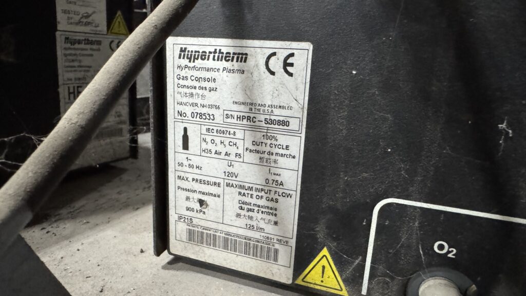 Hypertherm Plasma Edge Connect CNC Control System on Remote Operator Pedestal, Hypertherm HPR400XD Plasma Source, Oxy Fuel Cutting Torch, Integrated Hornet Hydroclean Water Table and a THC with Hornet Cutting Systems Torch Lifter