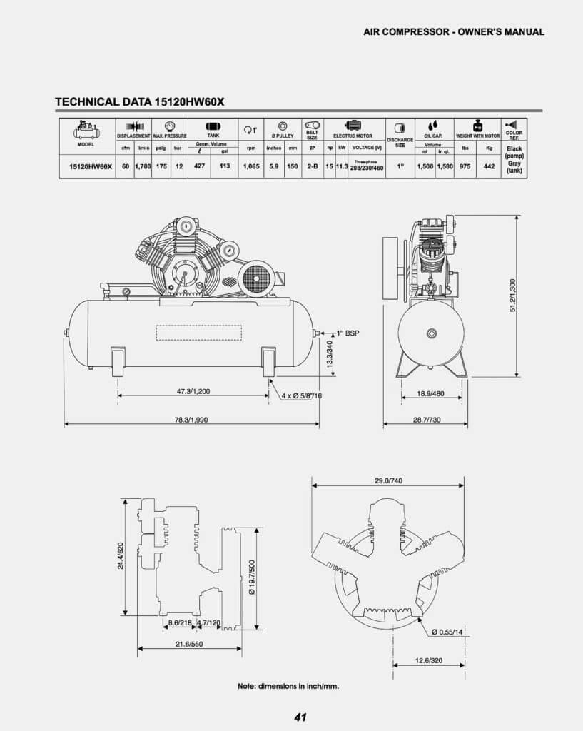 - Motor Horsepower: 15 HP / 11.19 KW