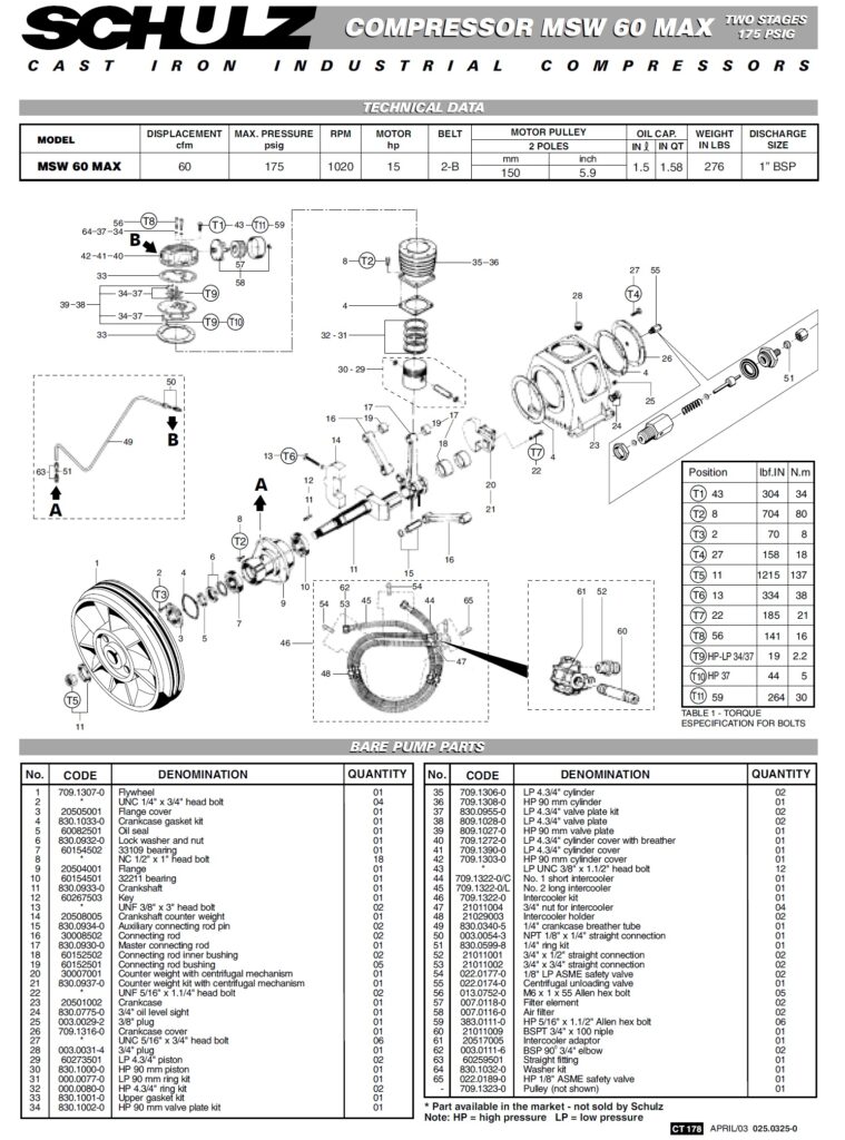 - Free Air Delivery @ 175 PSI: 60 CFM / 1699 L/min
