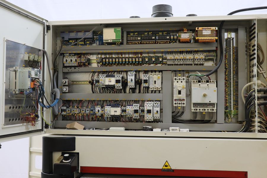 B&R PP41 Control, Pneumatic Belt Tensioning, Electric Part Thickness Adjustment, Infeed and Outfeed Roller Extensions, Vacuum Table w/ Ferrari FA 806 Blower Suction