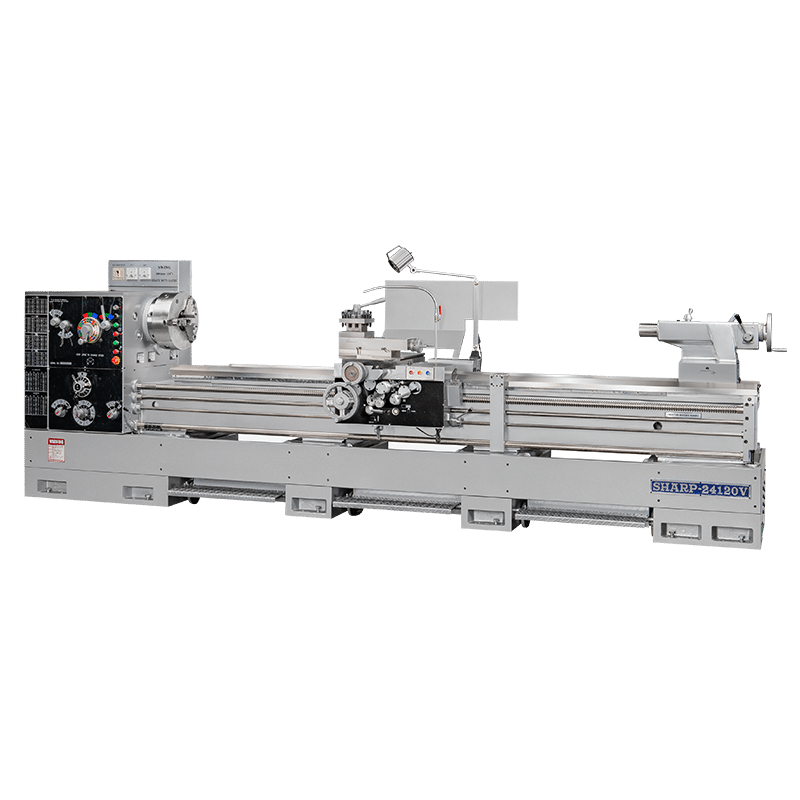 Optional Accessories: Taper attachment, Roller jaw set (3 pcs) for steady rest, 3-jaw chuck 12″, 4-jaw chuck 16″, Follow rest, Quick change tool holder, Live center – (dual bearing) MT #5, Live center – MT #5, Micrometer carriage stop, Steady rest (8-3/4″ – 13″, 11″ – 17″, 14″ – 21″), 20 HP motor in lieu of 15 HP motor, Rear splash guard (80″ / 120″ / 160″ length), CSA or UL electrical parts and wiring, Chuck guard with limit switch, Tool post guard, Spindle rear end cover, Lead screw cover