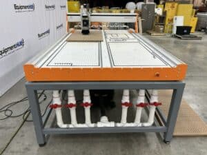 7HP Air-Cooled ATC Spindle, 6-Zone Vacuum Table with T-Tracks, Vacmaster ShopVac Vacuum, 10-Position Tool Rack, ISO30/ER32 Tool Holders, Opt Lasers PLH3D-Series Laser Head, Job Positioning System (JPS) with Crosshair Laser, Integrated Tool Touch-Off Sensor, Pneumatic Dust Boot, Computer w/ UCCNC Control Software, 9 Tool Holders, mobile work desk.