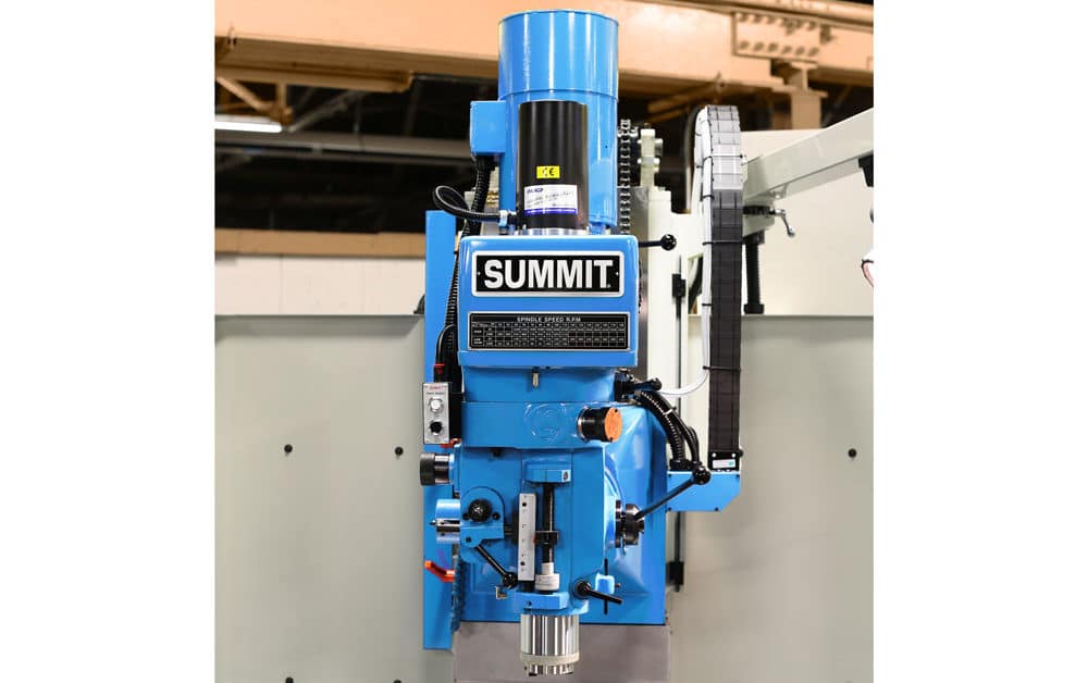 Standard Accessories: Heavy Meehanite cast iron construction, heavy box saddle, huge box ways on column, Turcite-B inserted guideways, double table locks, wipers on saddle and column, built-in coolant system, automatic lubrication, precision ground ball screws, inverter duty high-efficiency motors, compact AC inverter spindle drive, power cogged drive belt, electronic inverter-controlled braking, fan cooled electrical enclosure, low voltage controls, oil gun, clamping kit, anchor bolts, open end wrench set, steel way covers, halogen work light, air-operated power draw bar